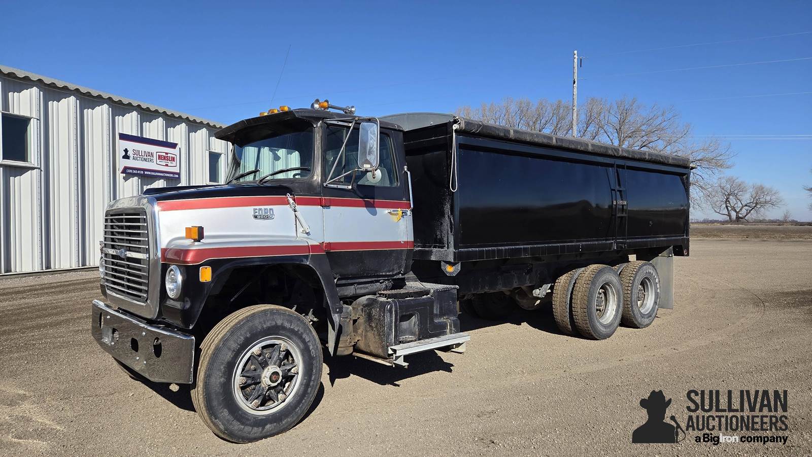 1982 Ford LNT9000 T/A Grain Truck, 421,075 miles showing, Title Will Be Marked Miles Exempt, Cummins Big Cam Series NTC350 14L Diesel Engine, 8LL Manual Transmission w/Splitter, Transmission Driven PTO, Spring Suspension, Air Brakes, Dual Fuel Tanks, Box Dimensions: 19.5'L x 8'W x 53"H, Manual Roll Tarp, Rear Grain Gate, WB 150", Radio, Heat, 11R22.5 Tires (Like New), VIN: 1FDYW90W8CVA14029