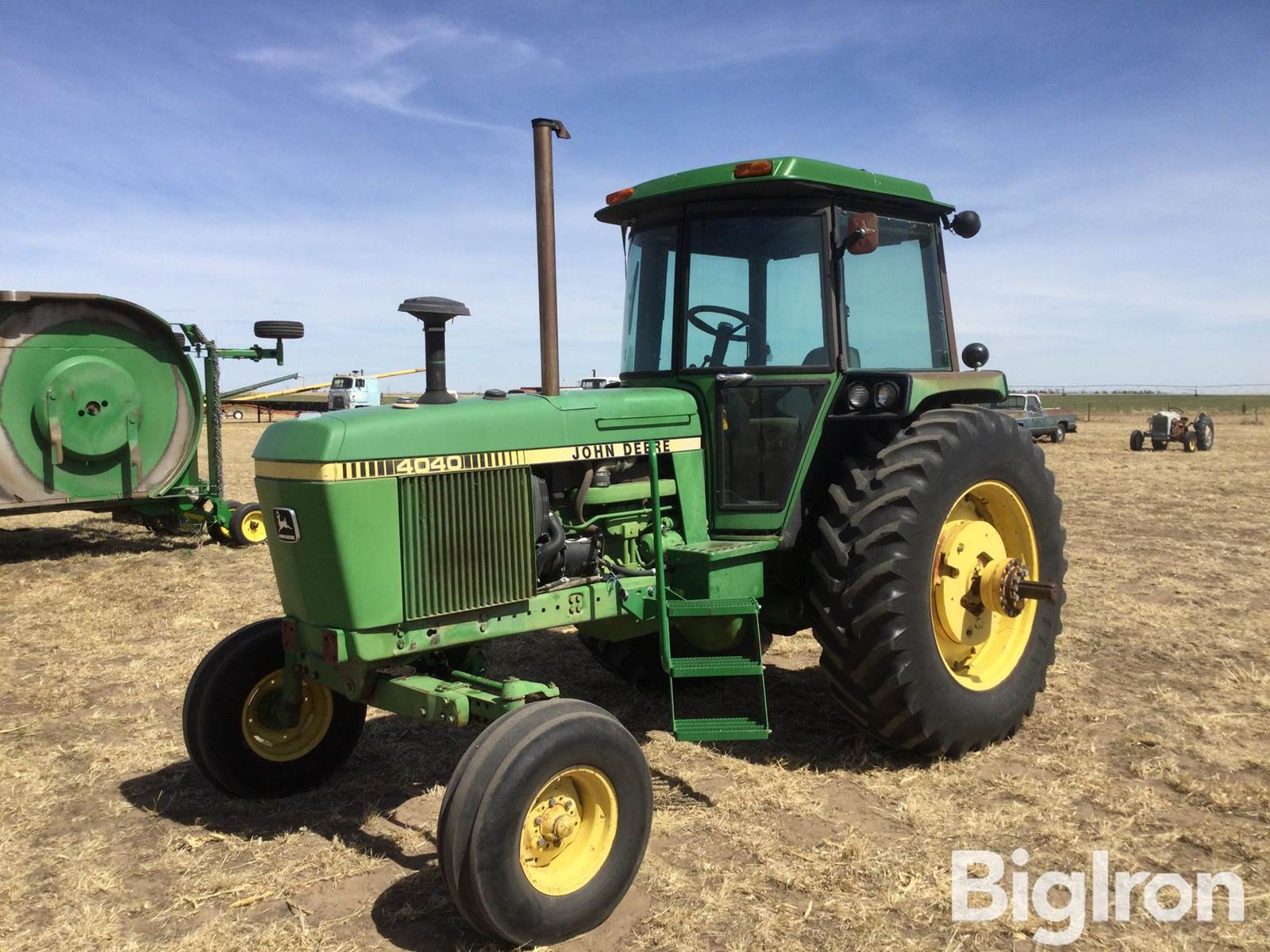1982 John Deere 4040 2WD Tractor, 3,817 hrs showing, John Deere 6-Cyl Turbo Diesel, Water Cooled Engine, John Deere Quad Range, Partial Powershift, 16 Forward Speeds, 6 Reverse Speeds, Independent PTO, 540/Small 1000 PTO, Rear PTO Location, 3 Auxiliary Hydraulics, Differential Lock, 11L-15 Front Tires, 18.4R38 Rear Tires, Duals, Heater, AC, Radio, 3-Pt hitch, (1) inner and (2) outer rear wheel weights each side, Hubs and duals included, SN: 4040H012406RW