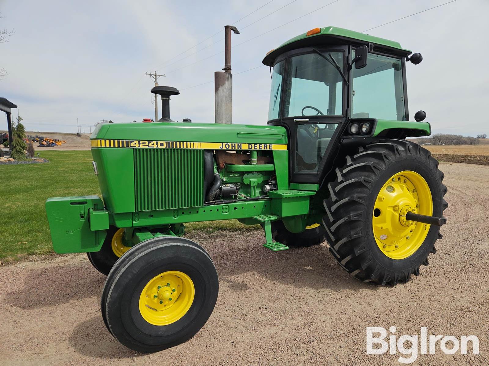 1982 John Deere 4240 2WD Tractor, 495 hrs showing, 122 hp, John Deere 7.6L, 6-Cyl Diesel Engine, Water Cooled, John Deere Quad-Range Partial Power Transmission, 16F & 6R Gears, 3-Pt. Hitch, Drawbar Hitch, (2) Hydraulic Remotes, 540/1000 PTO, Enclosed Cab, AC/Heat, AM/FM Radio, Lights, (6) Front Mounted Suitcase Weights, 11.00-16 Front Tires, 18.4-38 Rear Tires, SN: 028979RW