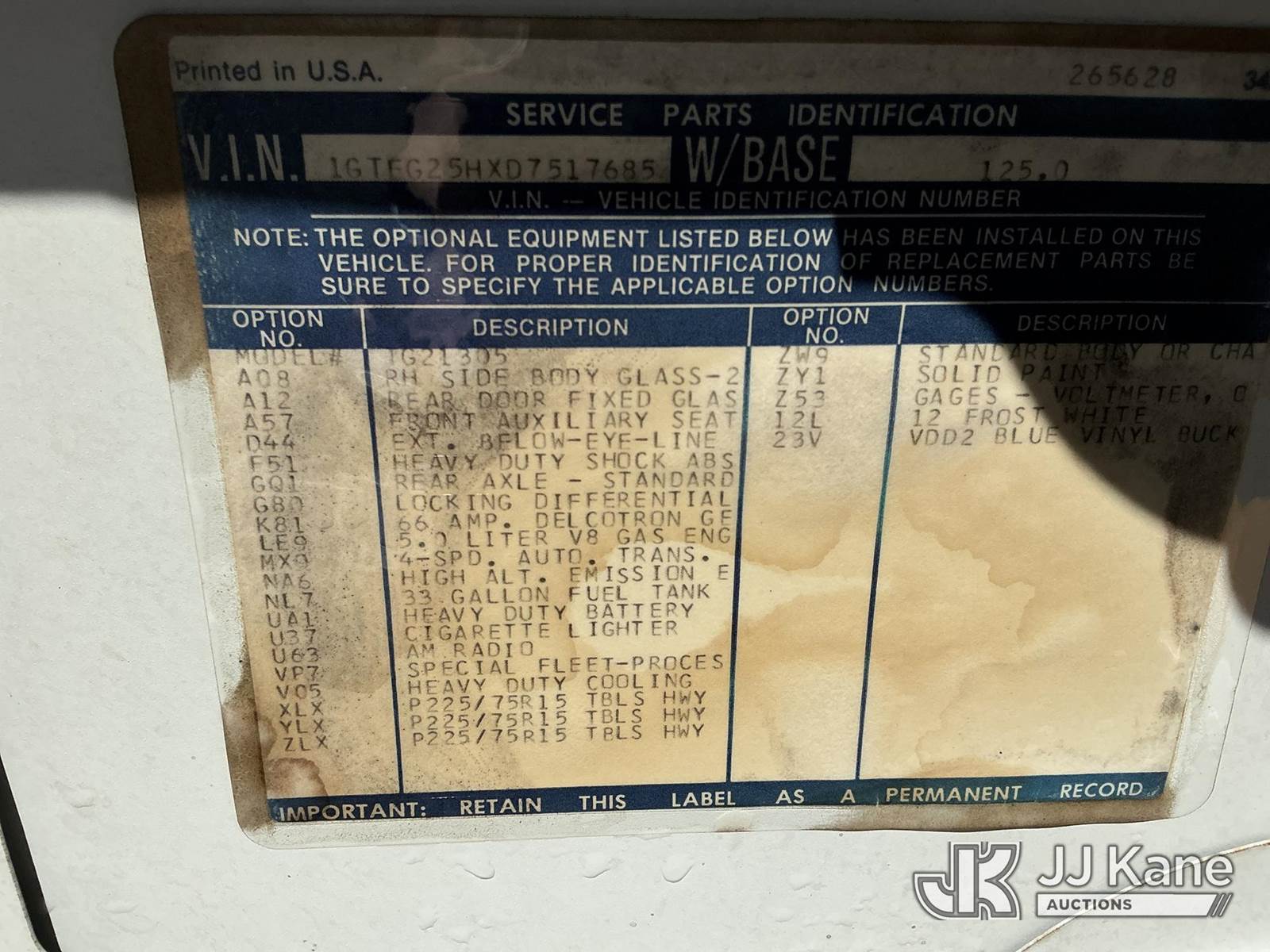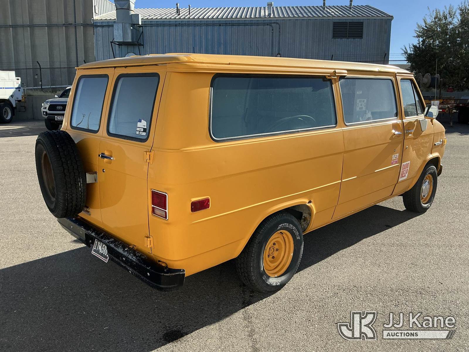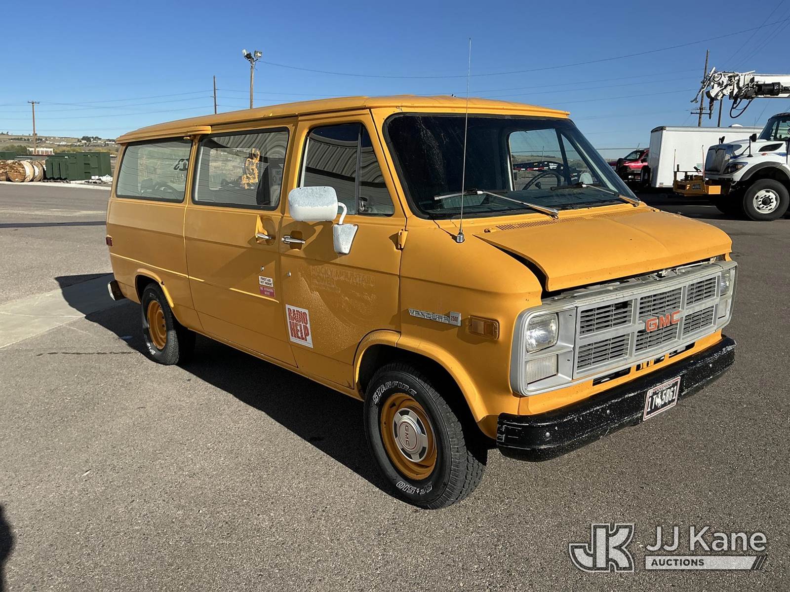 1983 GMC Vandura G2500 Cargo Van, 8-cyl gas, Auto, (Exempt from Odometer Disclosure - Reads 47,692 miles) Thumper Will Be Removed Before Sale (Runs & Moves) (Jump to Start) This is a Titled Item NOTE: This unit is being sold AS IS/WHERE IS via Timed Auction and is located in Casper, WY. For more information & removal arrangements please contact Joseph Hull @ (801) 386-2131. (Buyer is responsible for removal. Assistance by consignor or JJ Kane Auctioneers is not assured.)