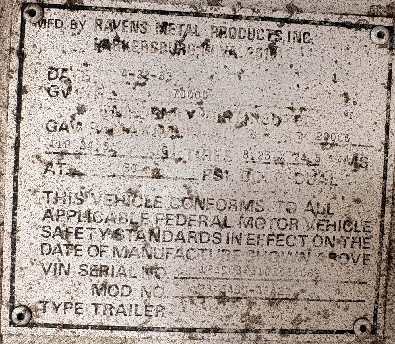 1983 Raven End Dump Trailer