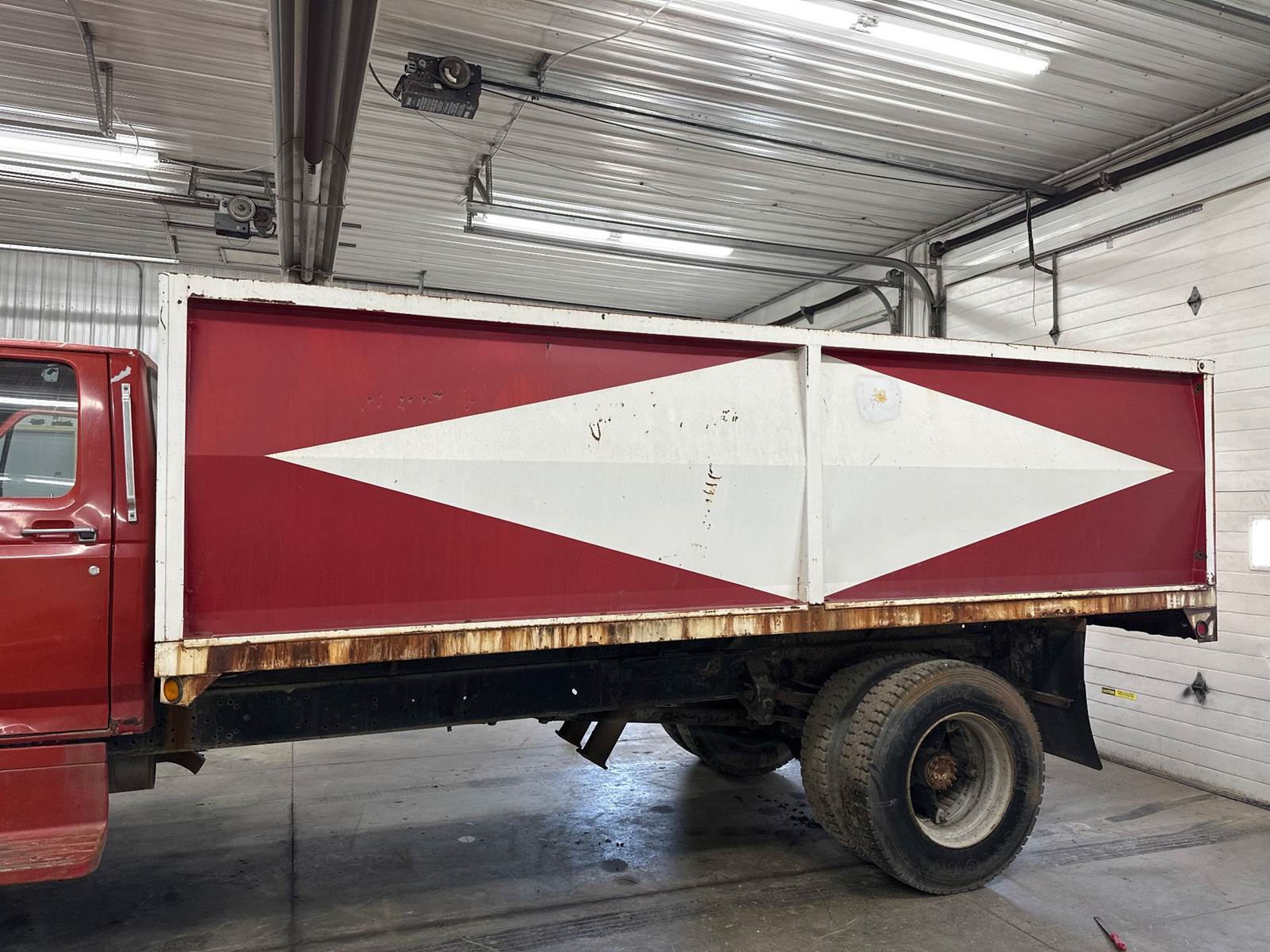 (USED) All Other ALL Length: 13.5 Width: 90 Side Height: 55 Gate Type: GRAIN WOOD GRAINBODY W/ WOOD FLOOR, INCLUDES HOIST, NOT TESTED