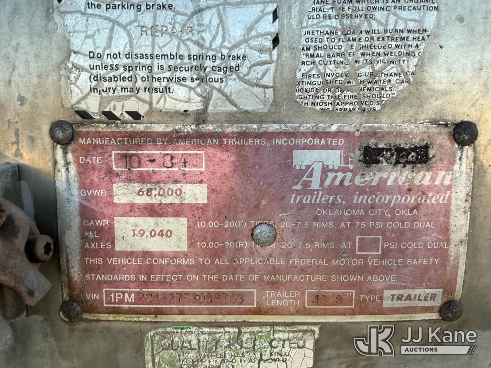 1984 American Trailers Refrigerated Van Body Trailer, with ThermoKing refrigerator unit, 48ft, 68,000-lb GVWR, (Refrigerator Unit Cranks But Won't Start) (Seller States: Needs New Fuel Line) This is a Titled Item NOTE: This unit is being sold AS IS/WHERE IS via Timed Auction and is located in Desert Hot Springs, CA. For more information & removal arrangements please contact Allen Patrick @ (725) 314-6230. (Buyer is responsible for removal. Assistance by consignor or JJ Kane Auctioneers is not assured.)