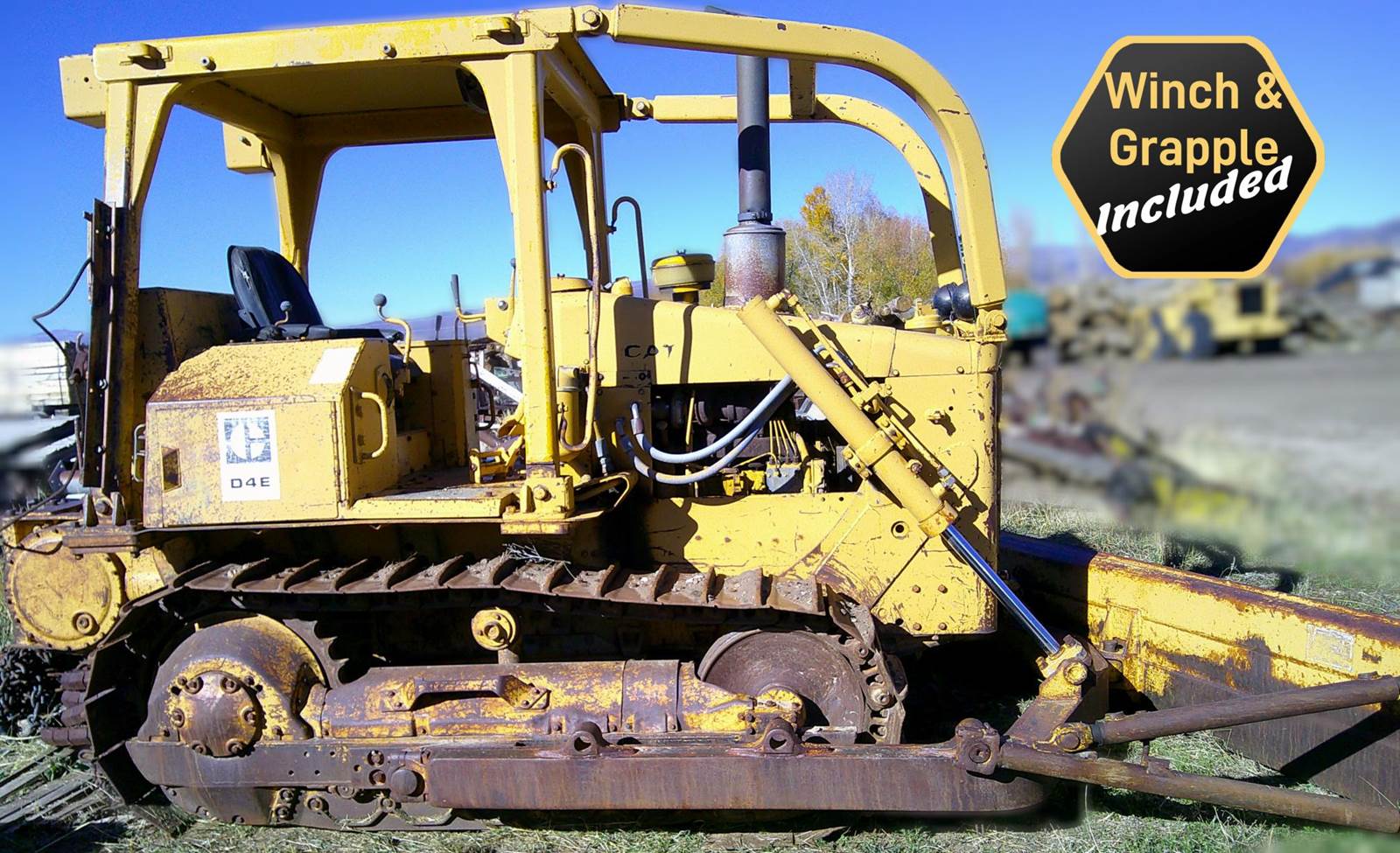 1984 Caterpillar D4E Crawler Dozer *** 30,000 lb Hydraulic Winch & Forestry Grapple included***, 85 H.P., Caterpillar 3304 diesel, 24,500 lb operating weight, 2,099 hrs, 3-speed transmission, 16" track pads, straight-blade, 10 ft blade width, 24" blade height, lever controls, Open ROPS logging canopy, sweeps, rear drawbar, Rear hydraulic winch 30,000 lb line pull, 150+ ft cable),24V solid-state service meter, Call for more details, RUNS & OPERATES, year model needs verified