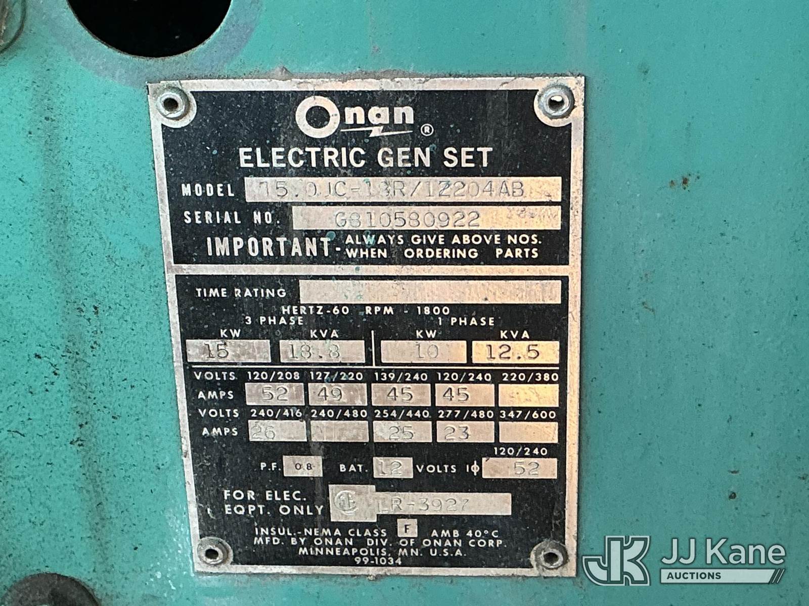 1984 Generator Trailer, LPG, with Onan Generator, pintle hitch, Generator Trailer (Not Running, Condition Unknown) (Reads 352 hours) This is a Titled Item NOTE: This unit is being sold AS IS/WHERE IS via Timed Auction and is located in Dixon, CA. Inspection & preview days for this unit are the 2 business days prior to the first day of items closing for this auction, item is located at 8668 Sparling Ln Dixon, CA 95620 and hours of operations are 8a-4p. For pre-sale questions, please contact JJ Kane Staff at (707) 678-8060 (dixon@jjkane.com). Dealer License Number 45696. (Buyer is responsible for removal. Assistance by consignor or JJ Kane Auctions is not assured.)