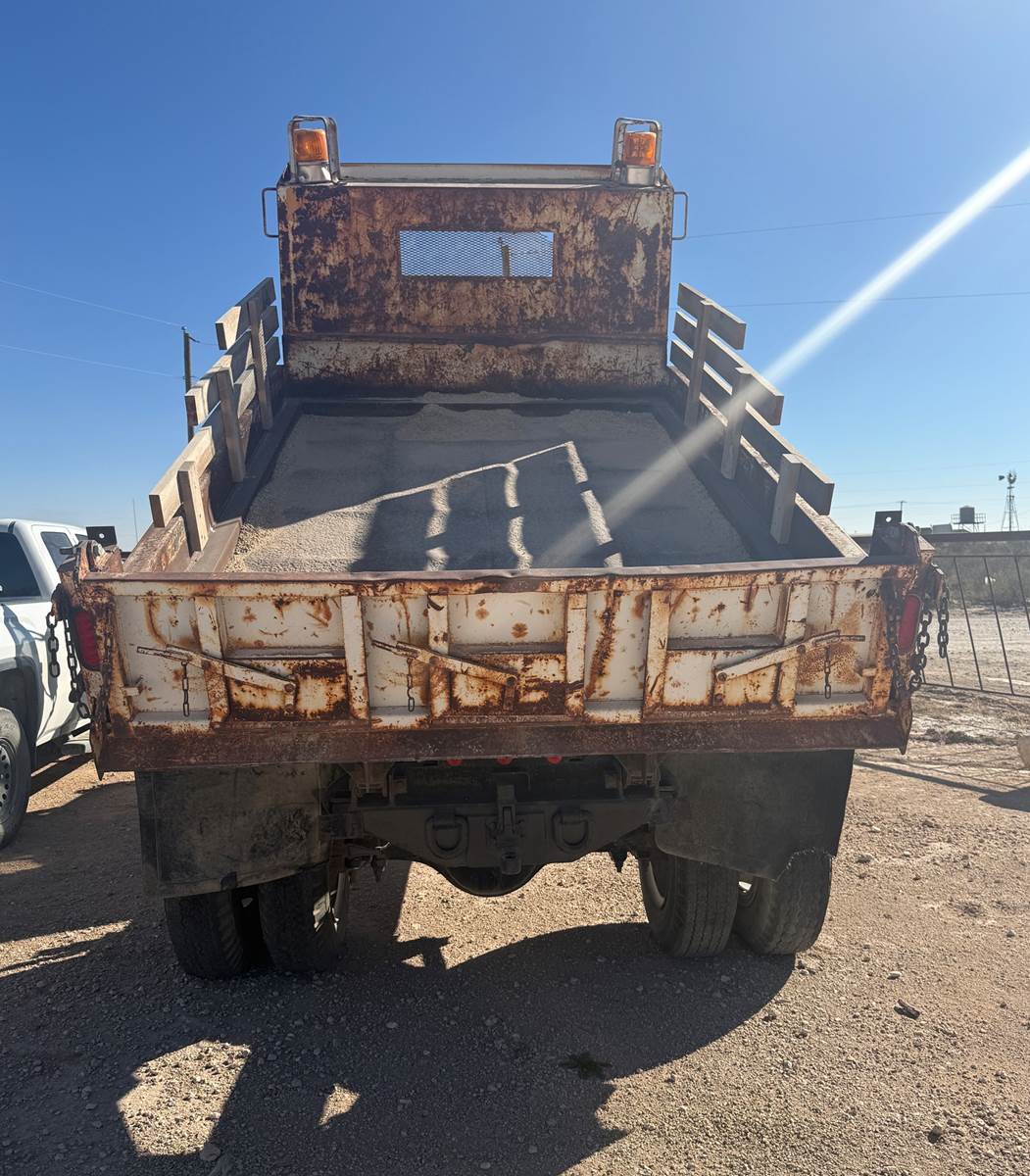 GMC 7500 8.1L V8 6 SPEED MANUAL DUMP TRUCK 8 TON PAYLOAD, GVRW 33,000, RWD 2WD, PTO, AIR BRAKES, PINTIL HITCH, SCISSOR HOIST, TRAILER AIR...