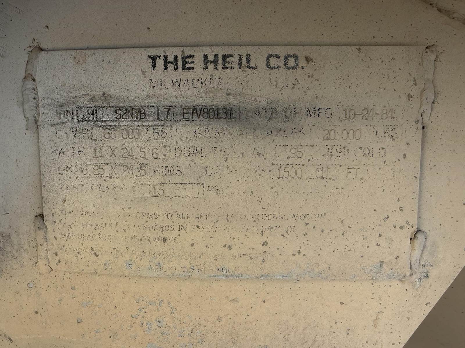 1984 Heil 1500 CUBE DRY TANK Dry Bulk / Pneumatic Tank Trailer