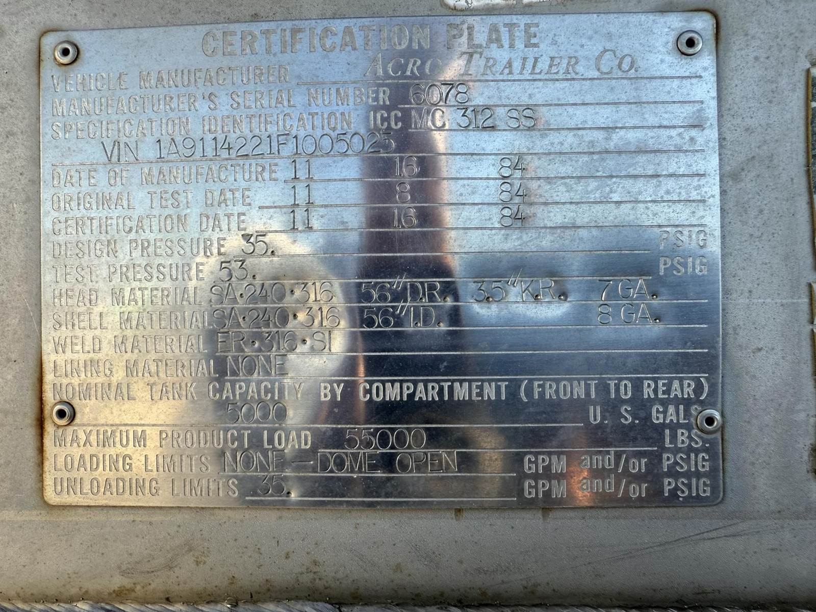 1985 Acro 5000 GALLON TANK Tank Trailer