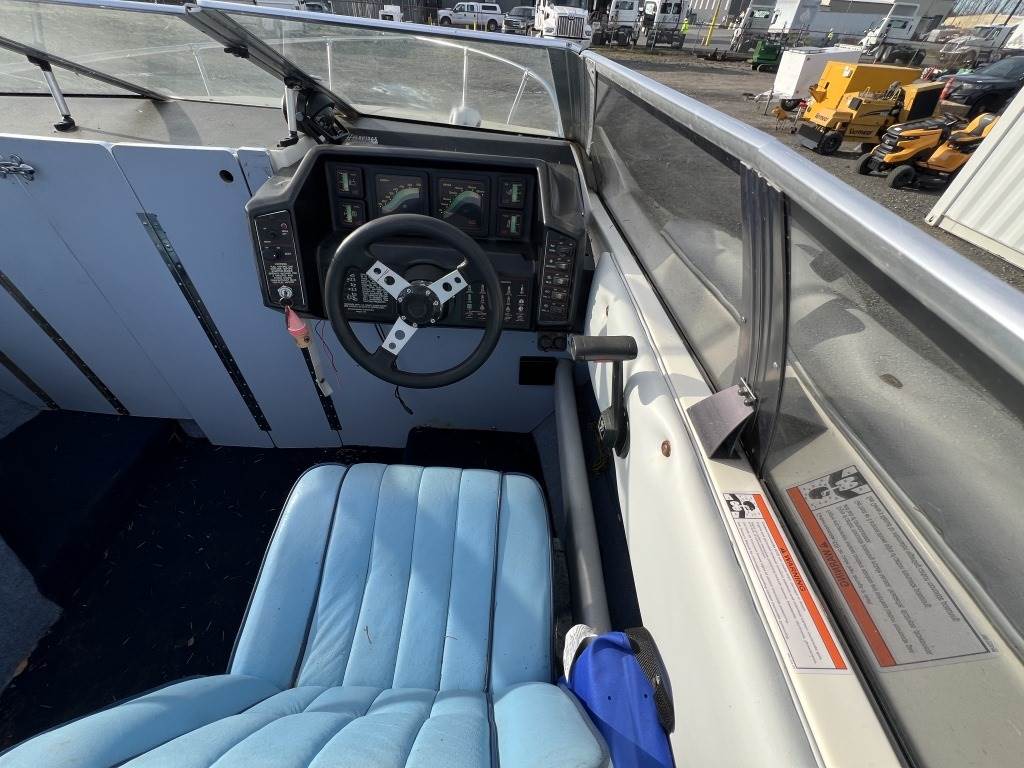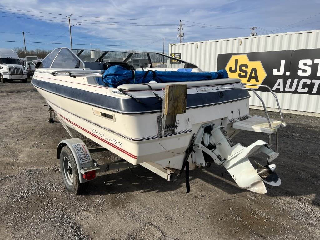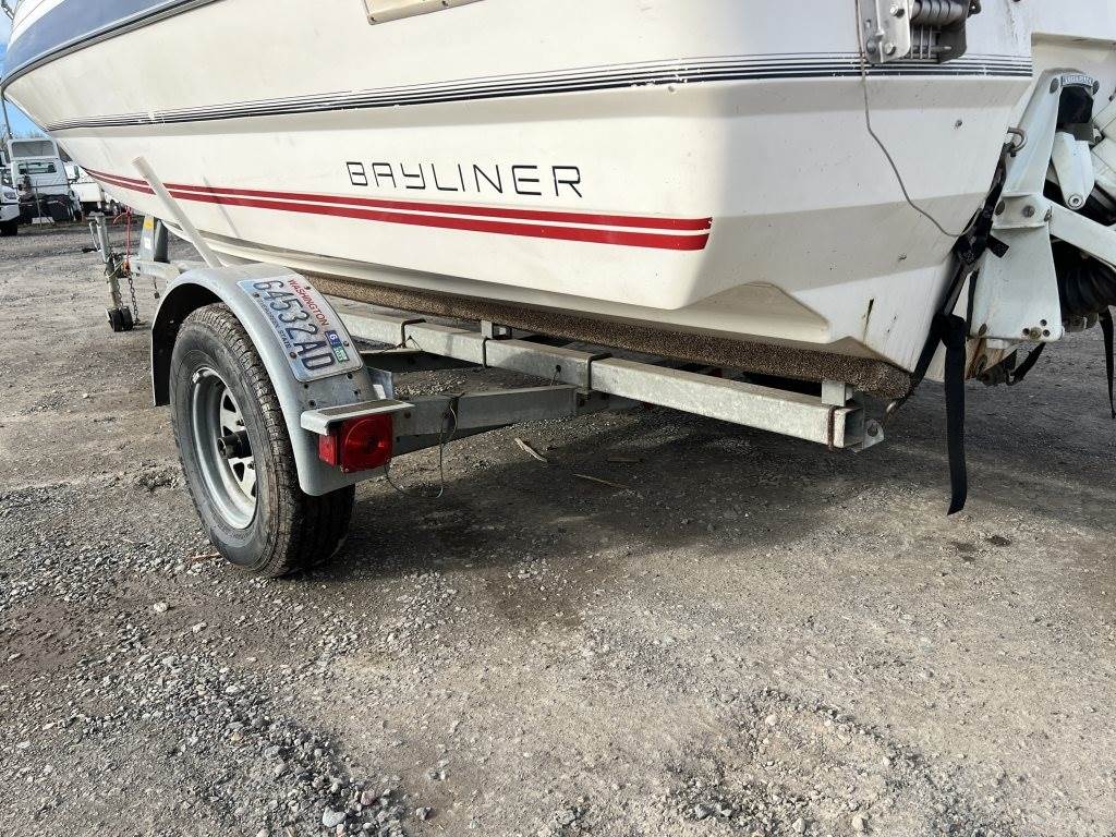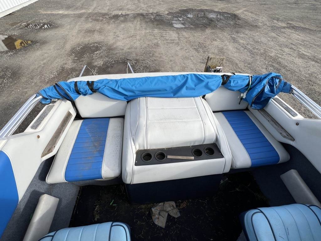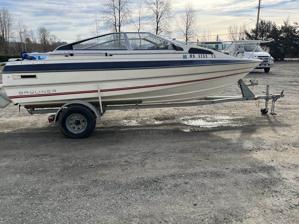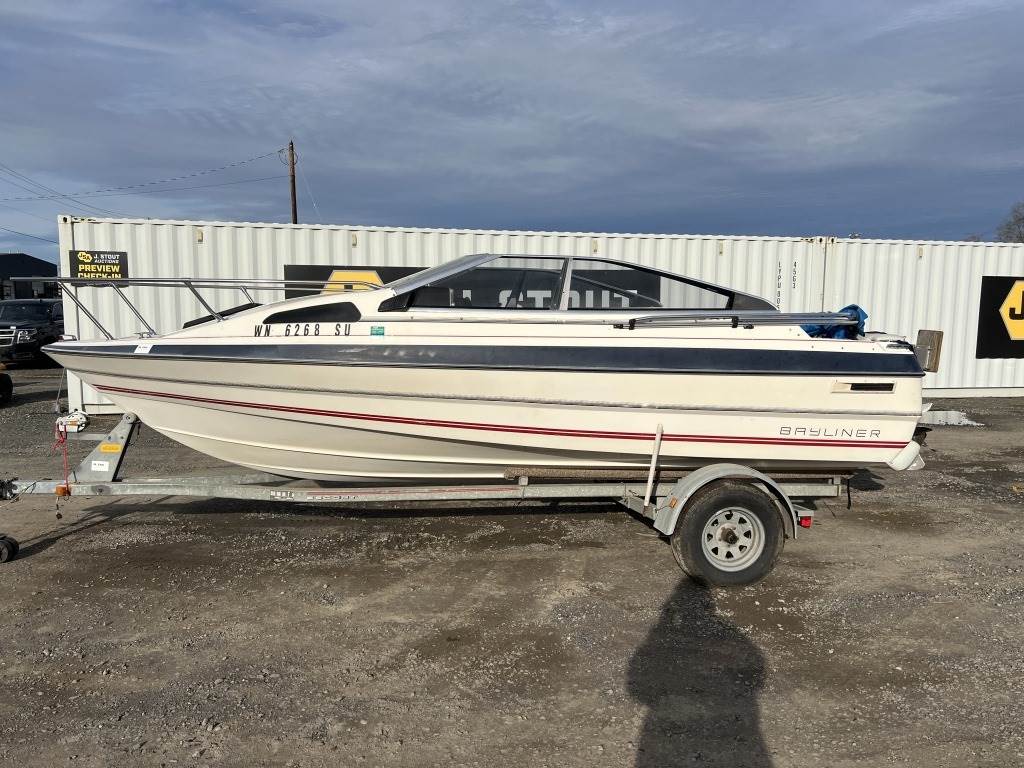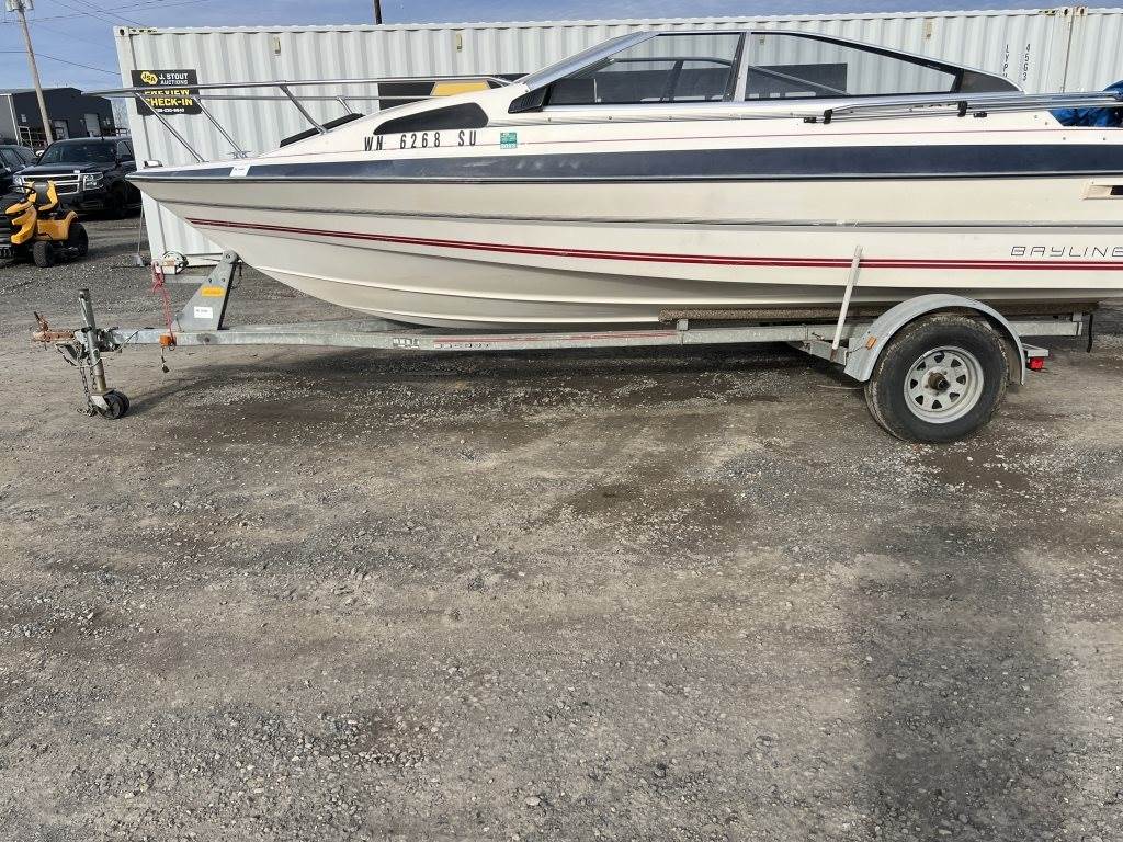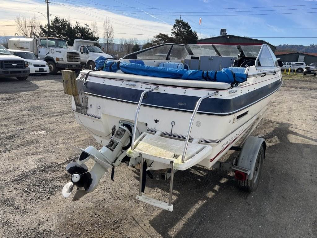 Location: Washougal WA ***End-User Consignment*** VIN: BL3B80CKH586 Engine: Volvo Penta 2.1L 3cyl Gas Bow rail, windshield, boat cover, outboard swim platform, outboard propeller, cuddy cabin, AM/FM/Bluetooth, 6 person/900lb capacity. Includes Calkins Escort S/A boat trailer, VIN: 1CXSP1910GS625683, 2" Ball hitch, ST215/75R14 tires.