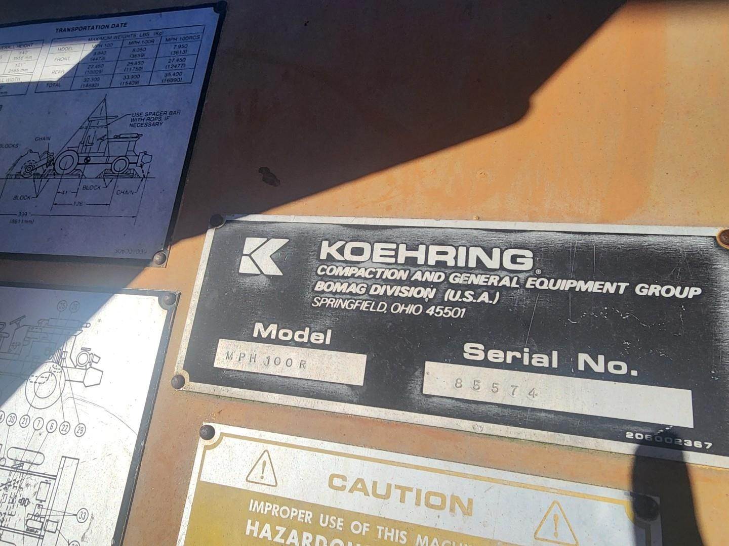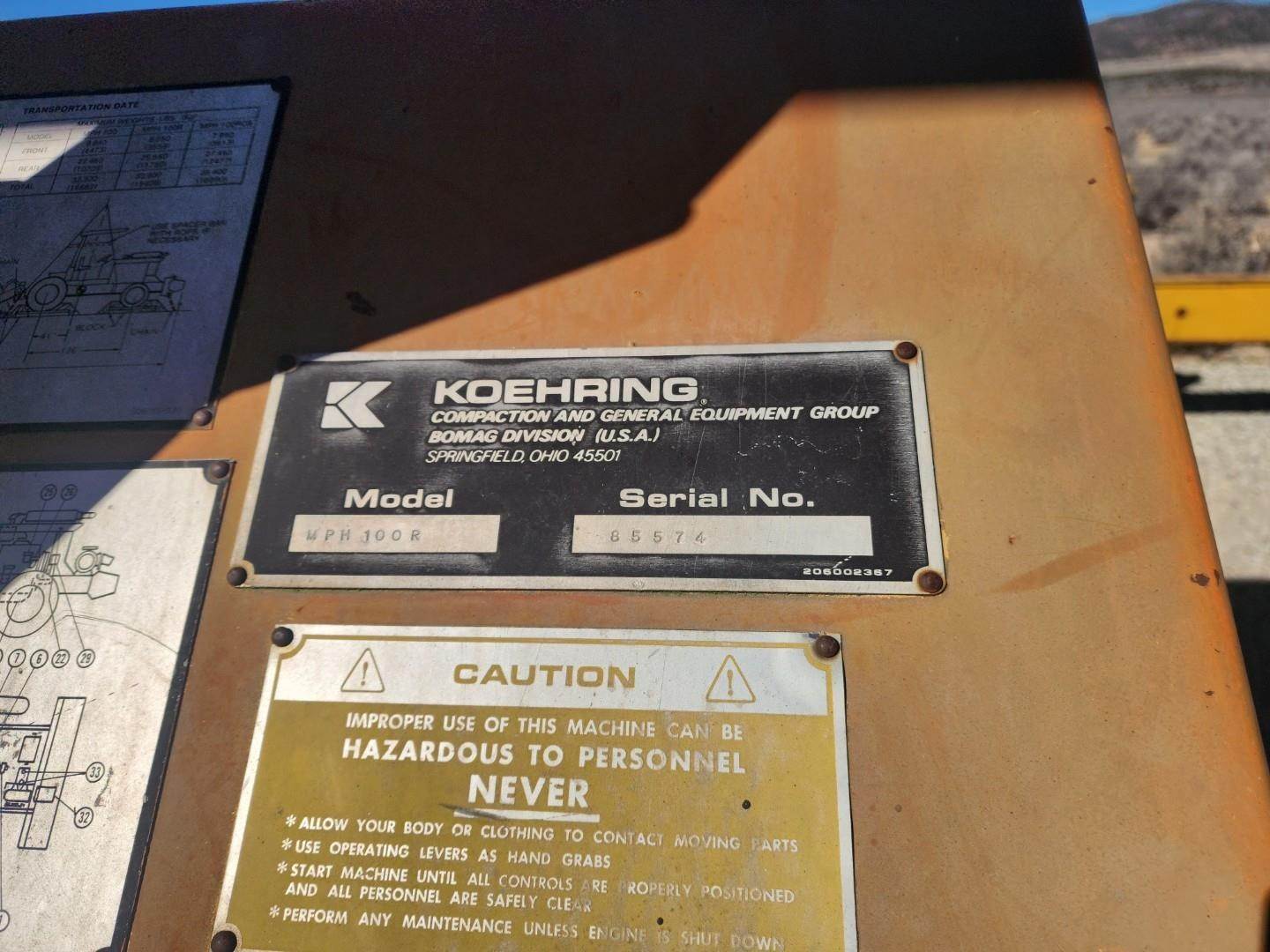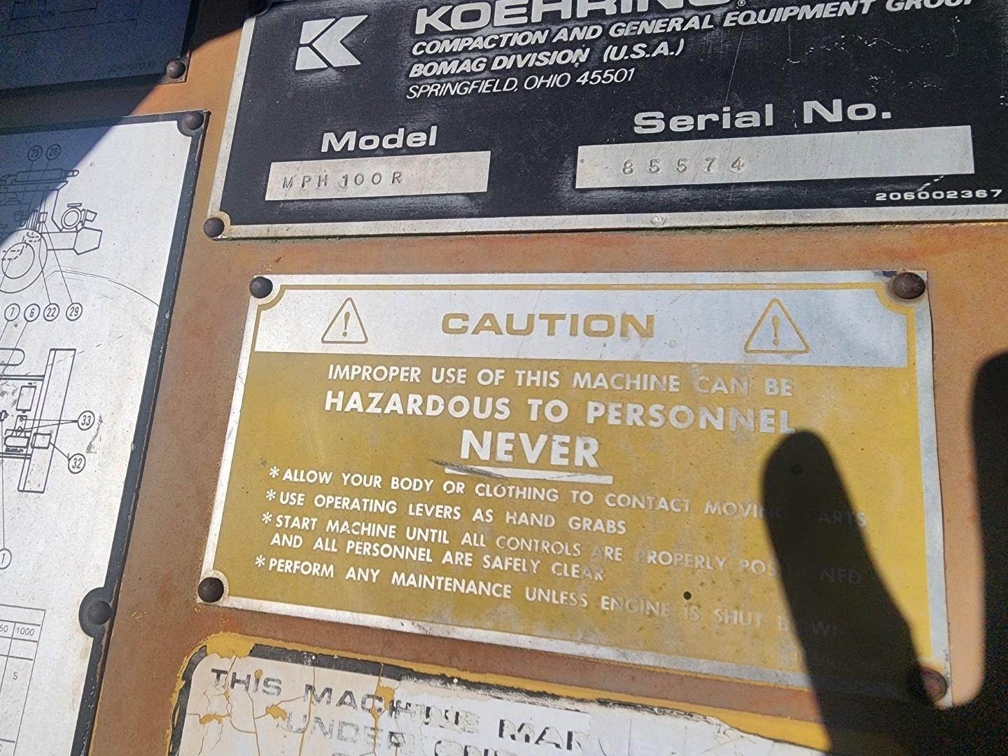 1987 Bomag MPH100R soil stabilizer / recycler. 1987 Bomag MPH100R soil stabilizer / recycler Hours: 2,354 on meter, Serial: 85723...