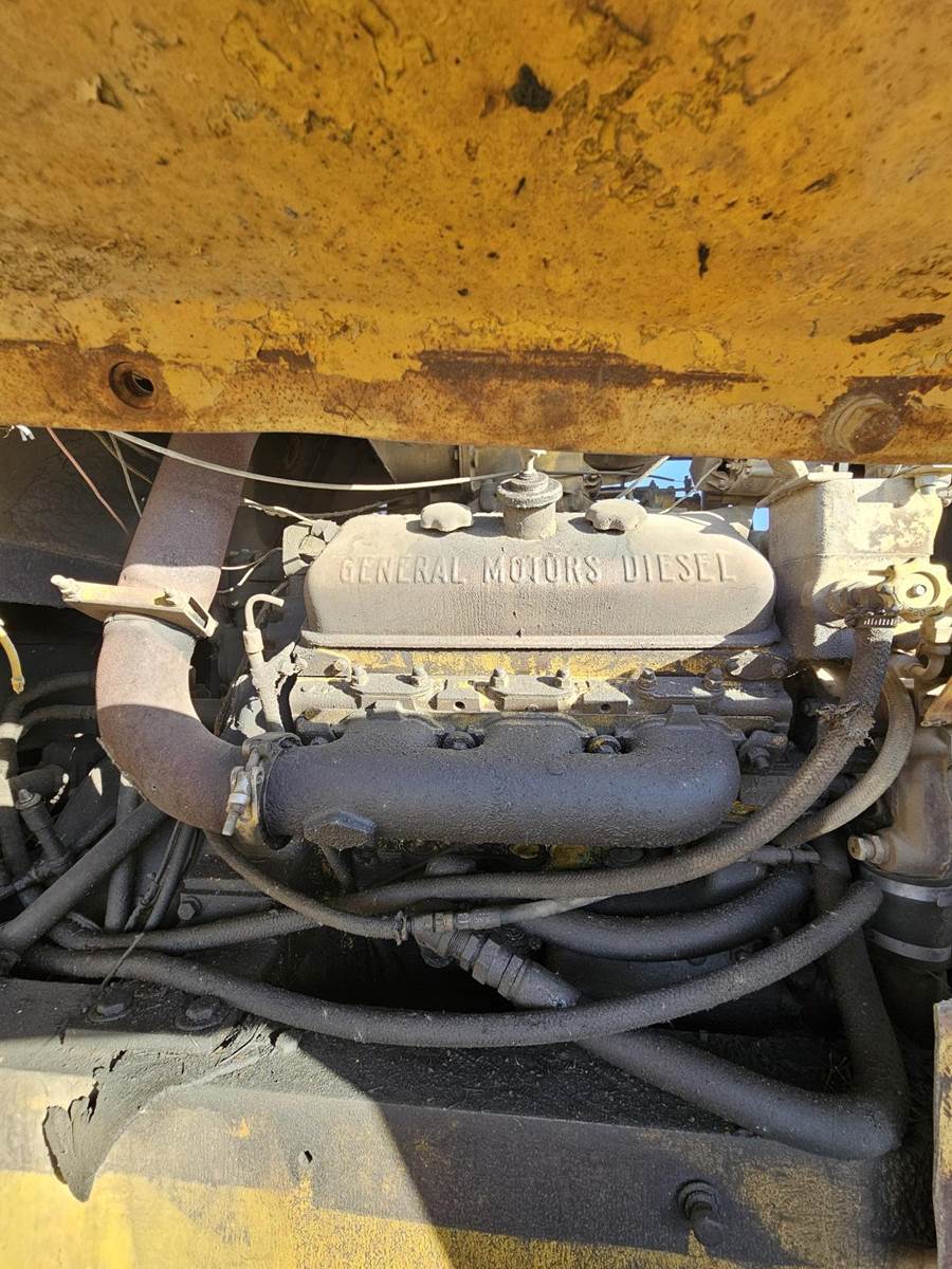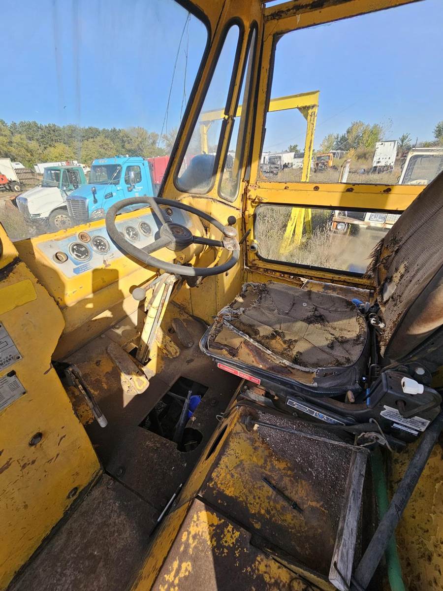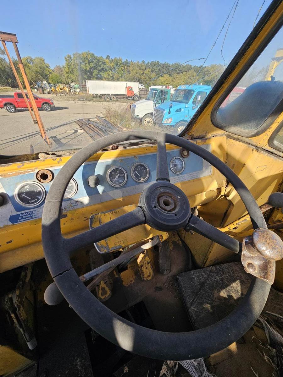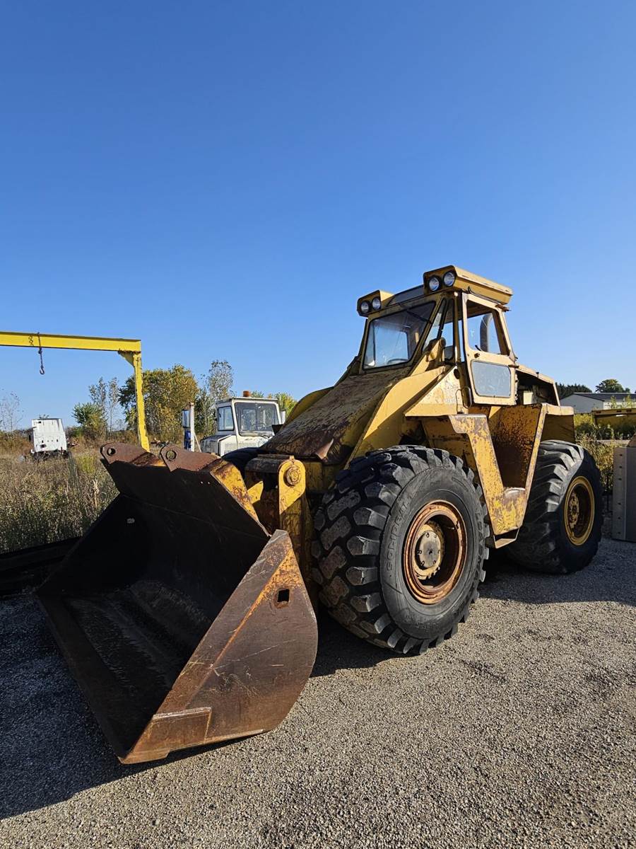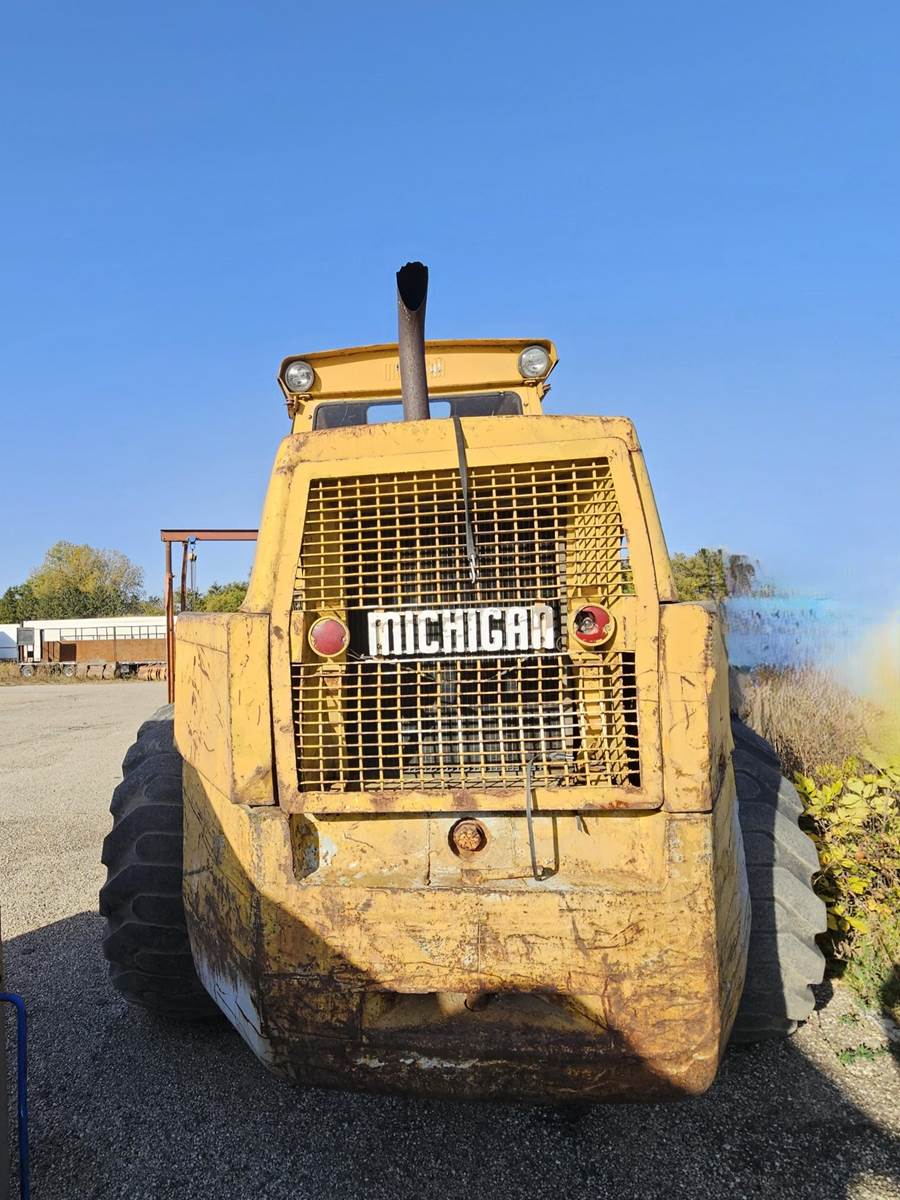 1980's era Michigan wheeled loader, General Motors Diesel engine 309 HP, Vehicle weight 57,781 lbs., 10 ft bucket width, starts right up, has a transmission leak.