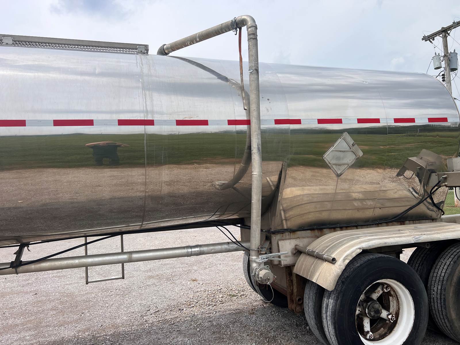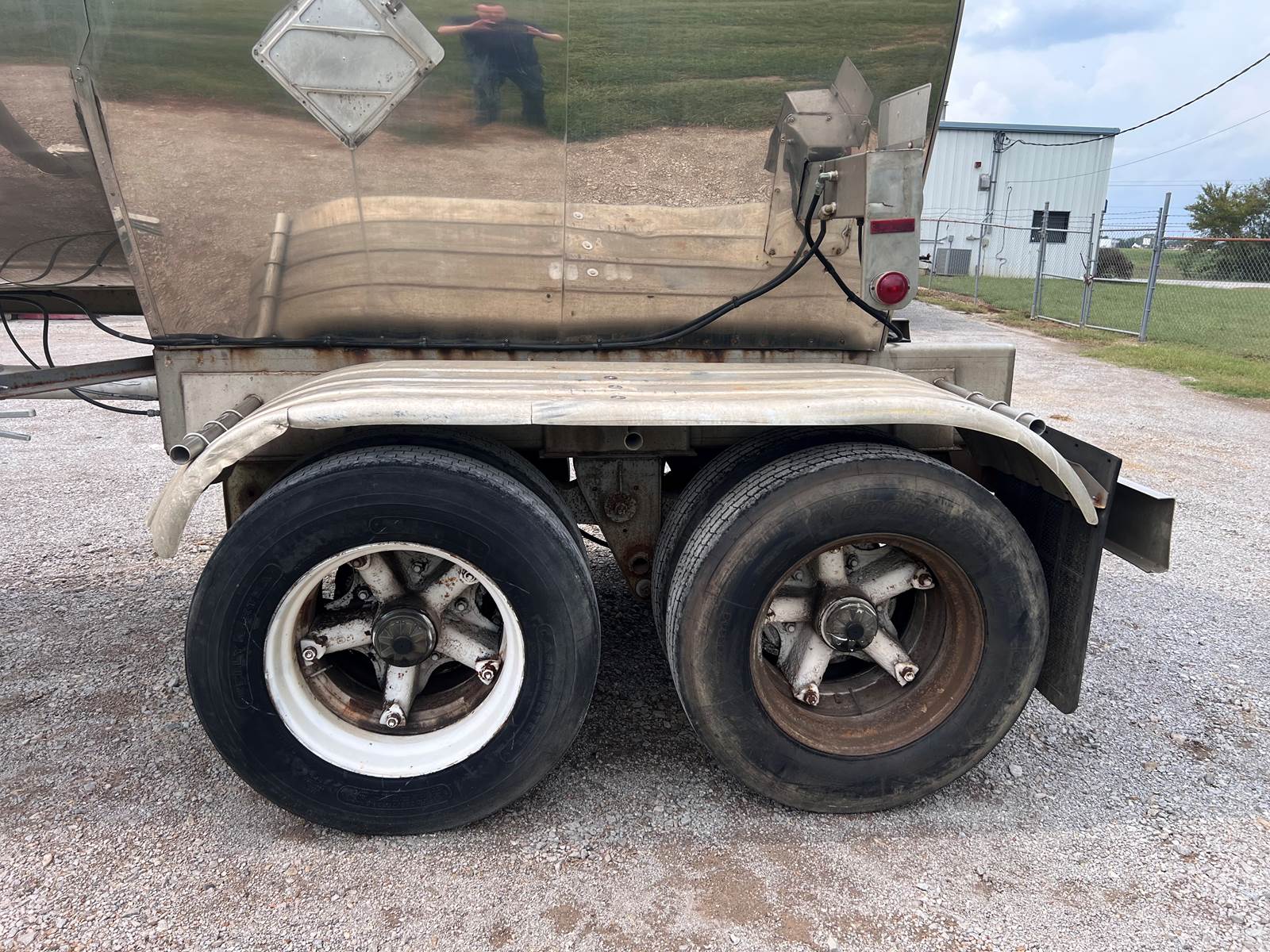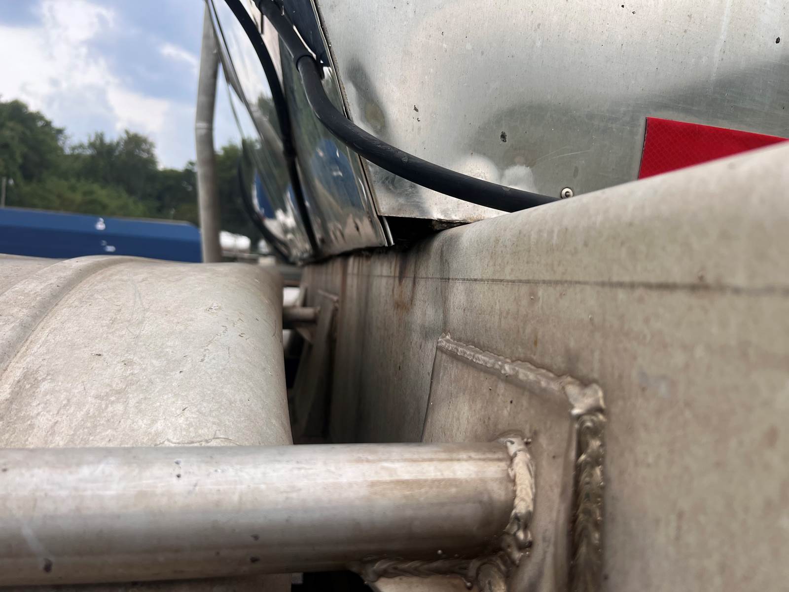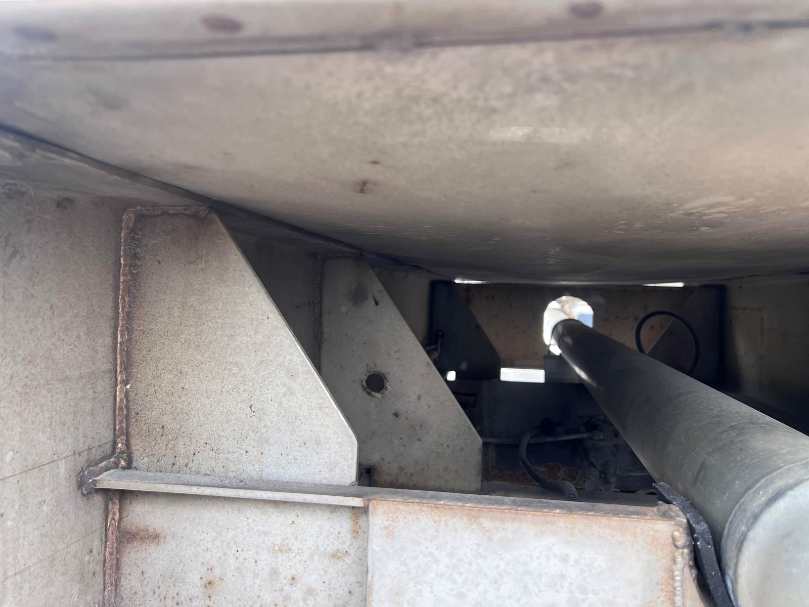 New Leak Check New brakes DOT annual inspection completed on 05/2024. There are a few sections on the 4" discharge pipe that have weld repairs. The internal valve was removed from the inner barrel; it only has the butterfly valve at the rear of the trailer currently. There is a second Discharge/Loading pipe coming down from the top of the trailer to the street side in front of the tires, It is a 3” pipe. This trailer was last hauling Waste Water from Indigo Leaves, the barrel is stained.