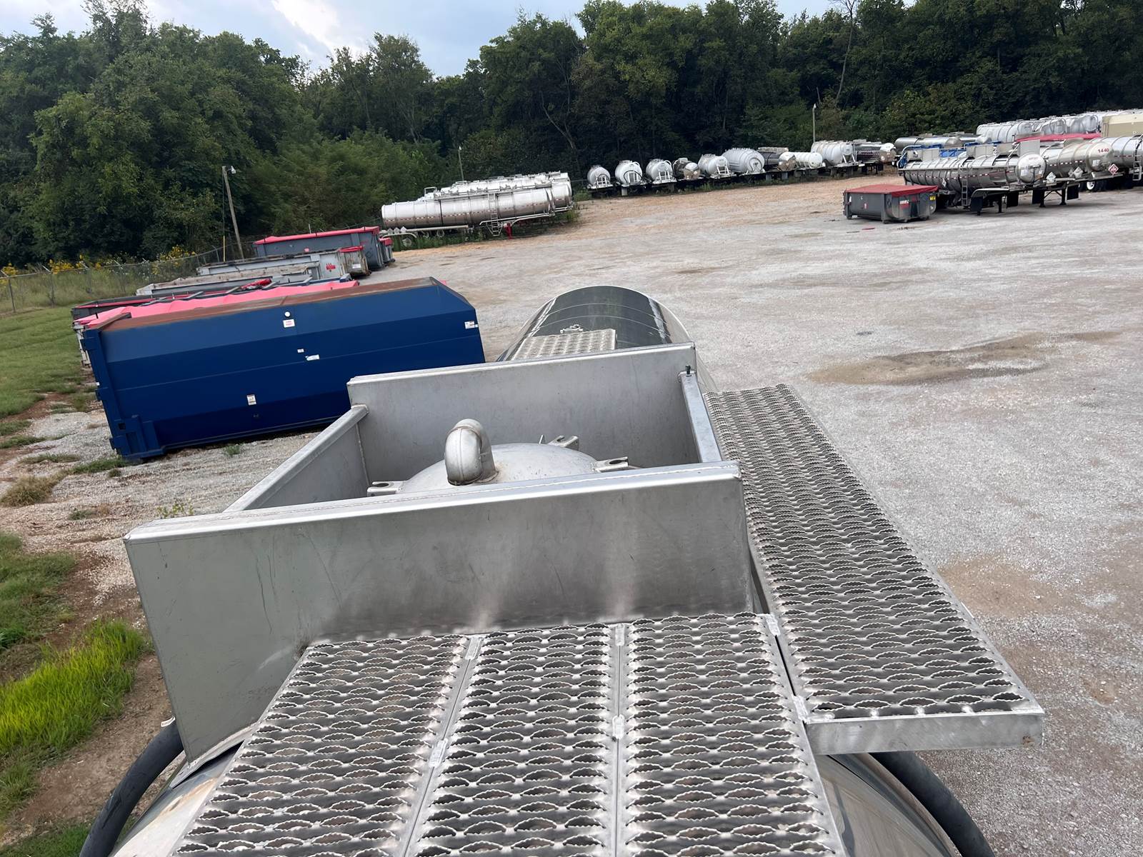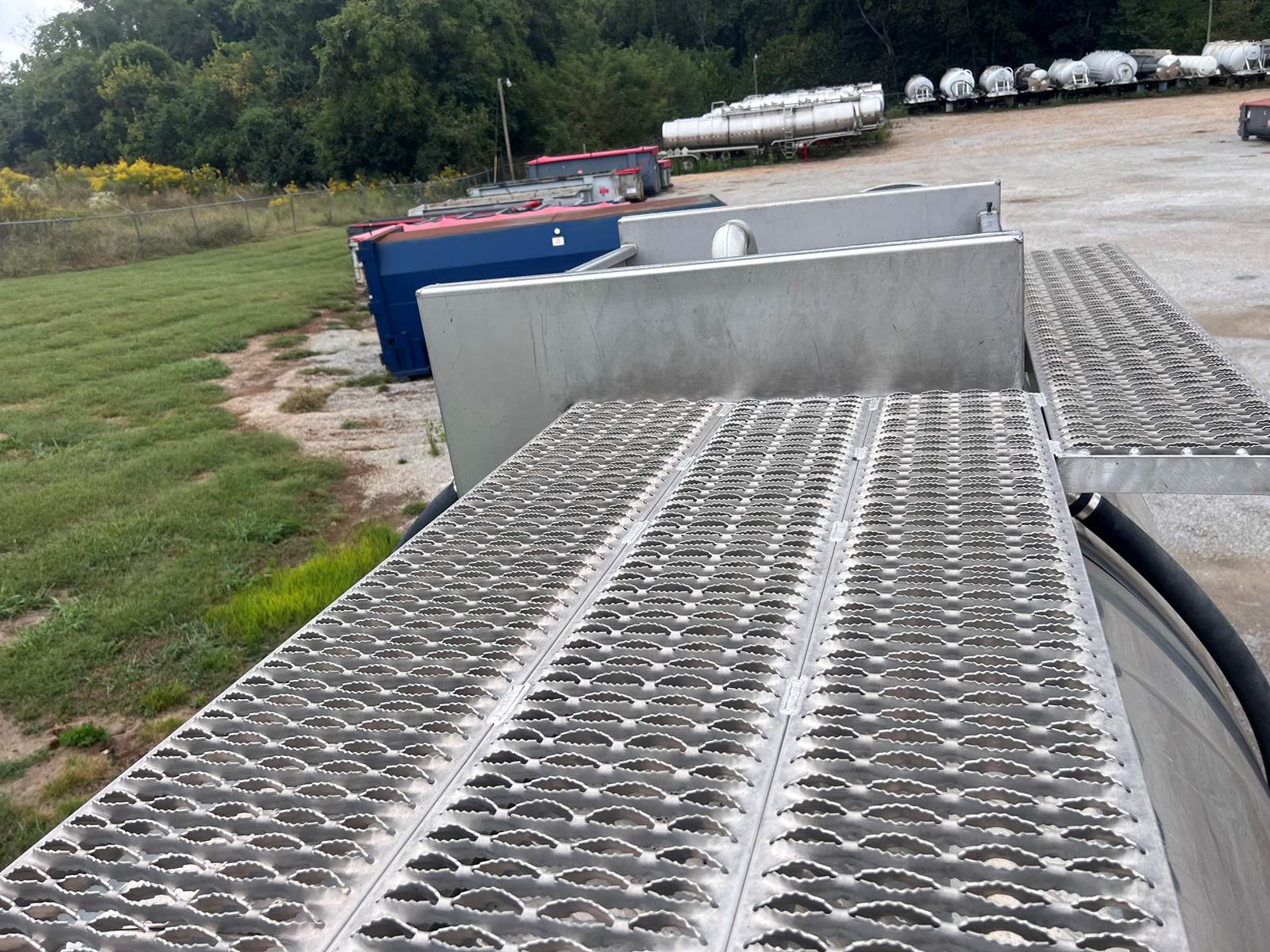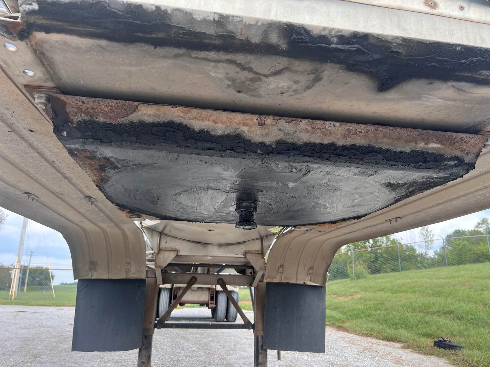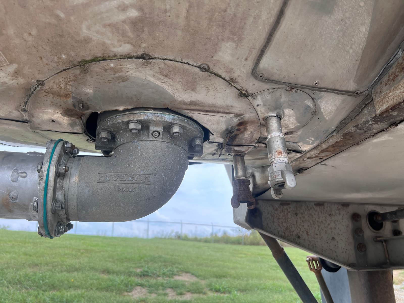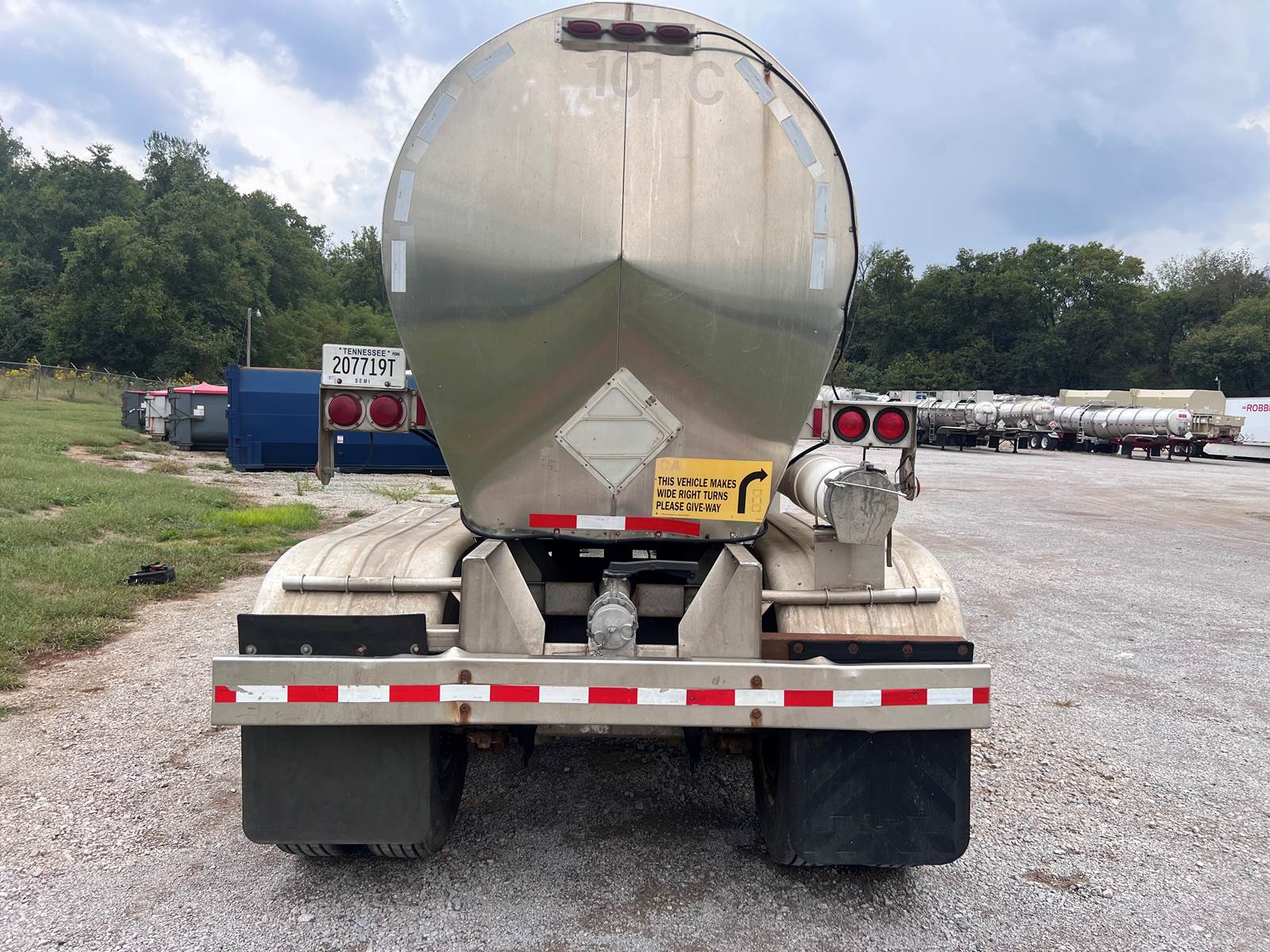 New Leak Check New brakes DOT annual inspection completed on 05/2024. There are a few sections on the 4" discharge pipe that have weld repairs. The internal valve was removed from the inner barrel; it only has the butterfly valve at the rear of the trailer currently. There is a second Discharge/Loading pipe coming down from the top of the trailer to the street side in front of the tires, It is a 3” pipe. This trailer was last hauling Waste Water from Indigo Leaves, the barrel is stained.