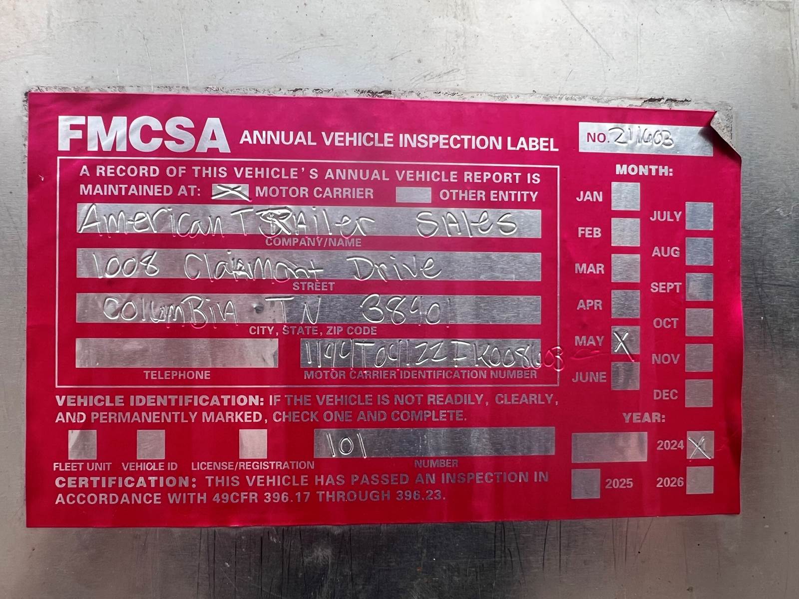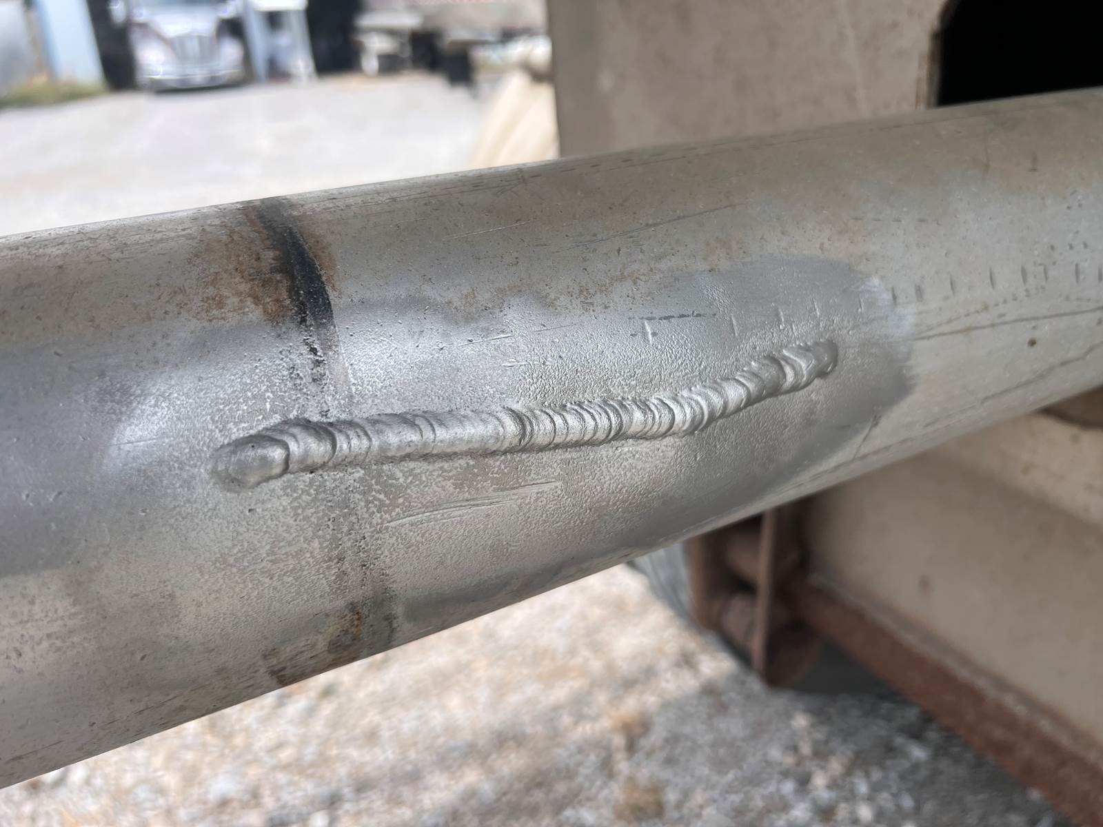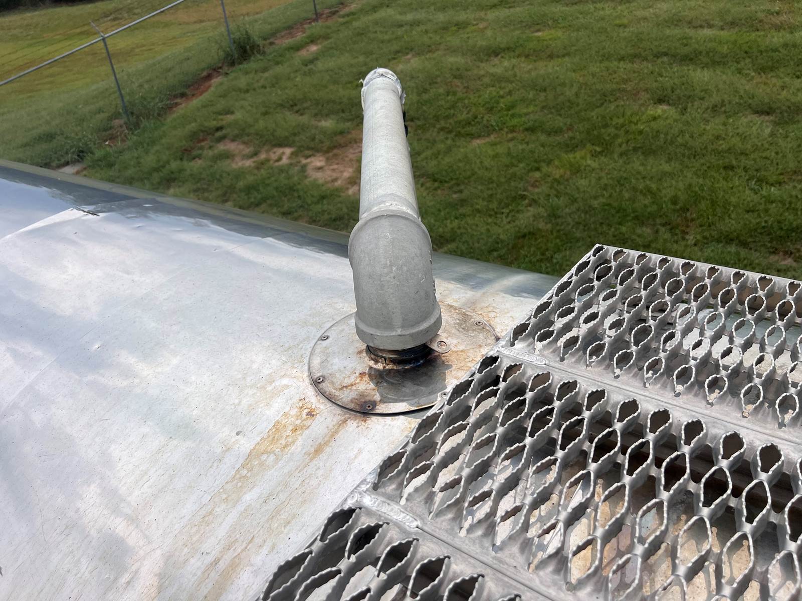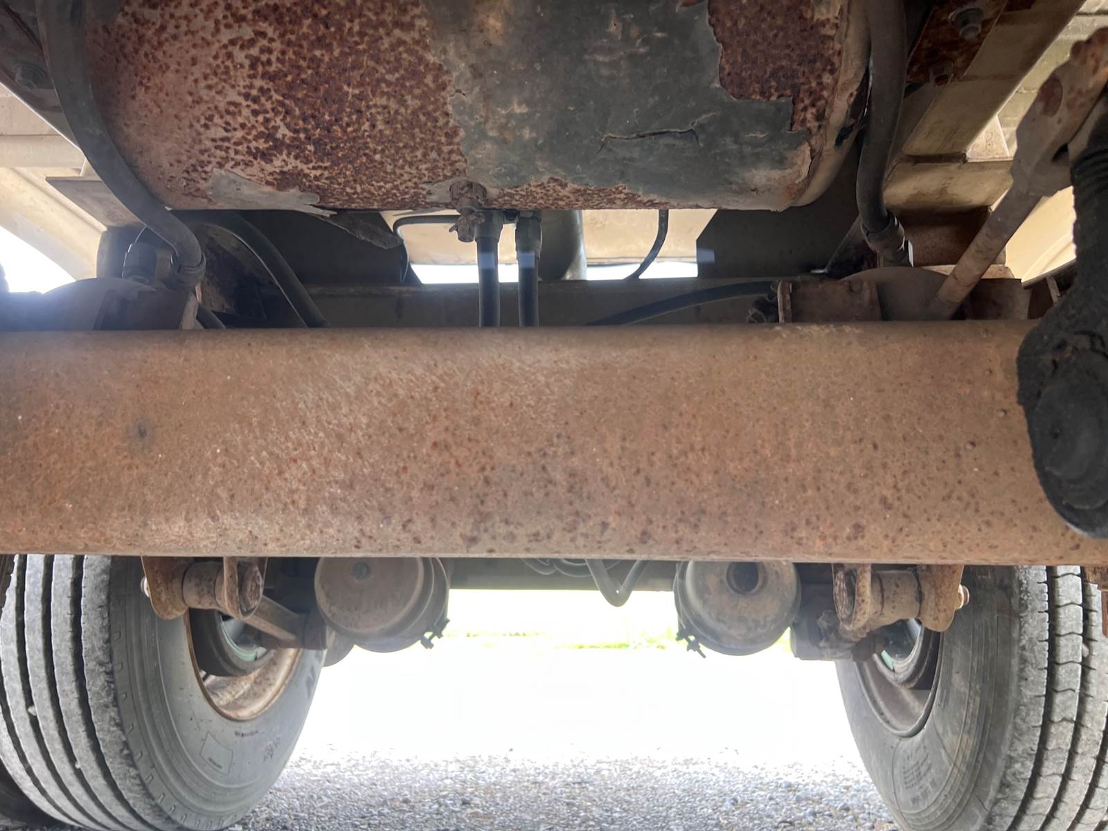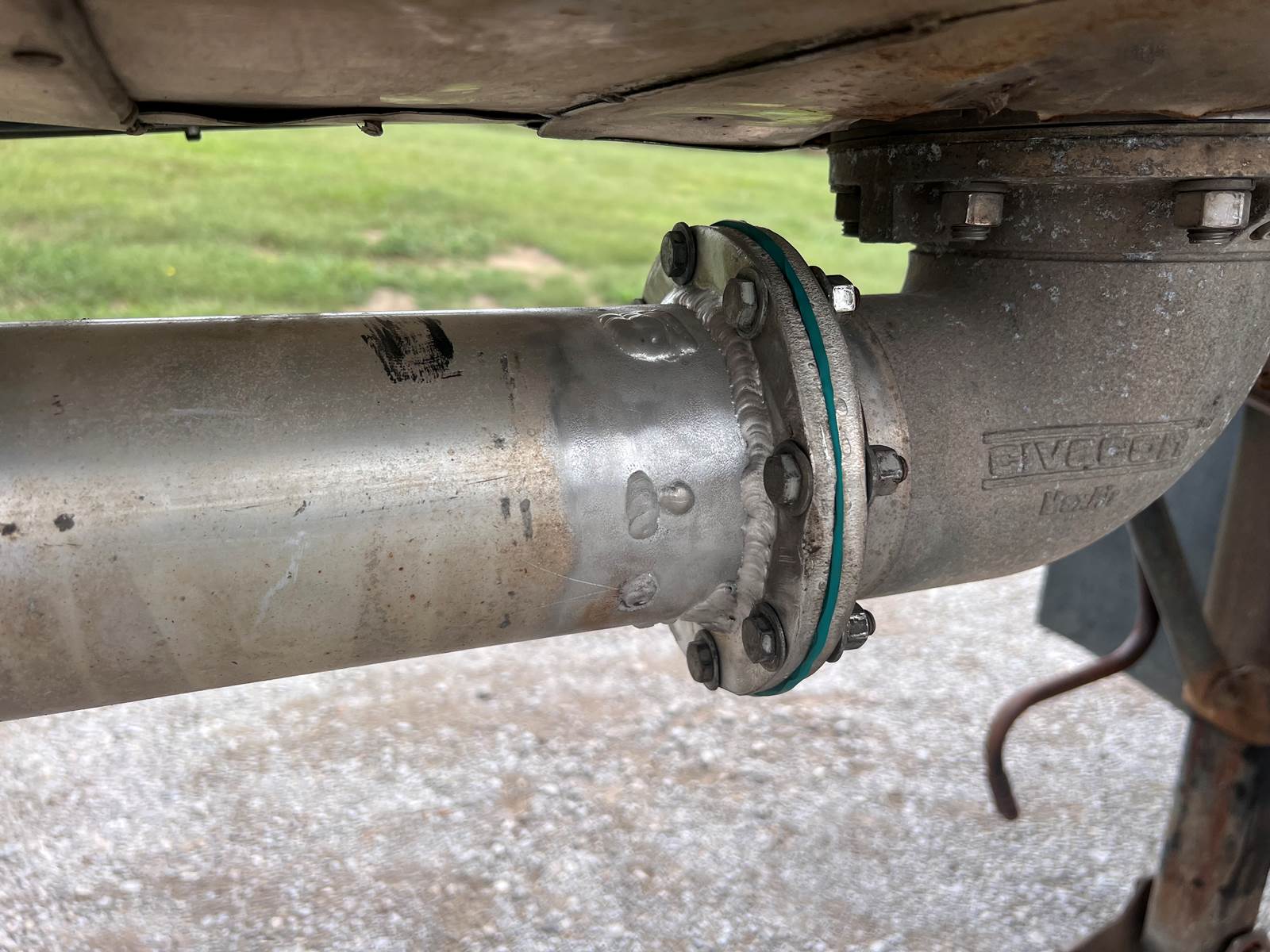 New Leak Check New brakes DOT annual inspection completed on 05/2024. There are a few sections on the 4" discharge pipe that have weld repairs. The internal valve was removed from the inner barrel; it only has the butterfly valve at the rear of the trailer currently. There is a second Discharge/Loading pipe coming down from the top of the trailer to the street side in front of the tires, It is a 3” pipe. This trailer was last hauling Waste Water from Indigo Leaves, the barrel is stained.