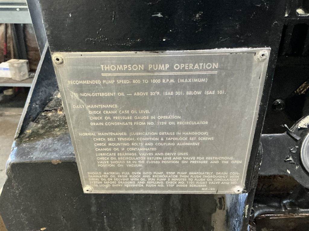 Thompson Pump Vacuum Pump (GM 292 Inline 6 Engine Block), Driver Side Mounted, PTO/Belt Driven.