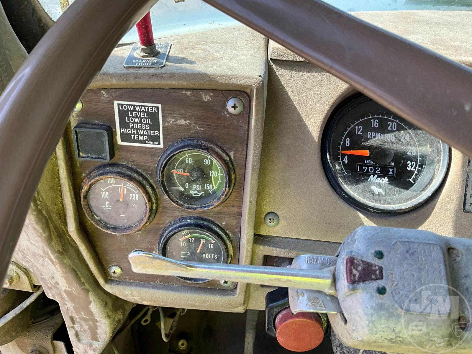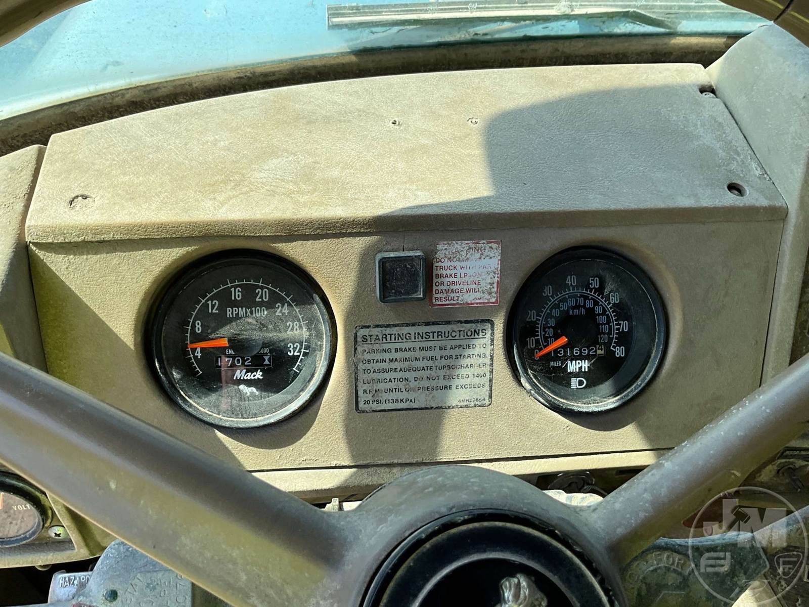TANDEM AXLE DUMP TRUCK, MACK, MACK, 13 SPEED, AIR BRAKES, AIR RIDE SUSPENSION, 200 " WB, 12' , STEEL, DUMP BODY, MANUAL GATE, STEEL DISC WHEELS, 11R24.5 TIRES, HOUR METER READS: 1701, ODOMETER READS: 131692