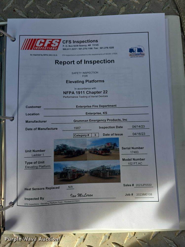1986 Grumman 453886 Duplex ladder fire truck