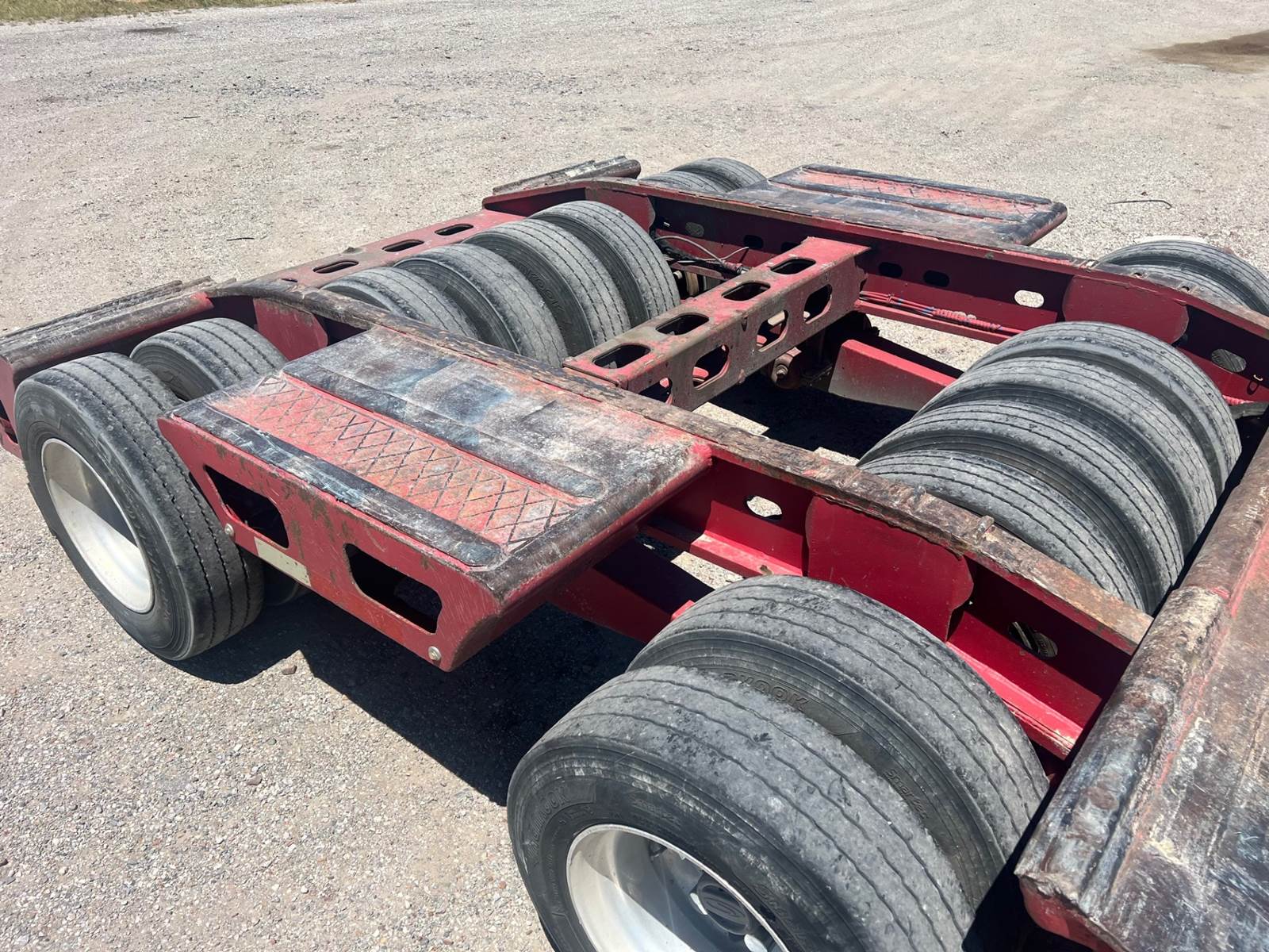 Overall very good condition - 1987 Cozad baby 9 axle, 10’ wide flat deck 26’ long with pin joint to add deck, 11R 22.5 tires, mostly new and...
