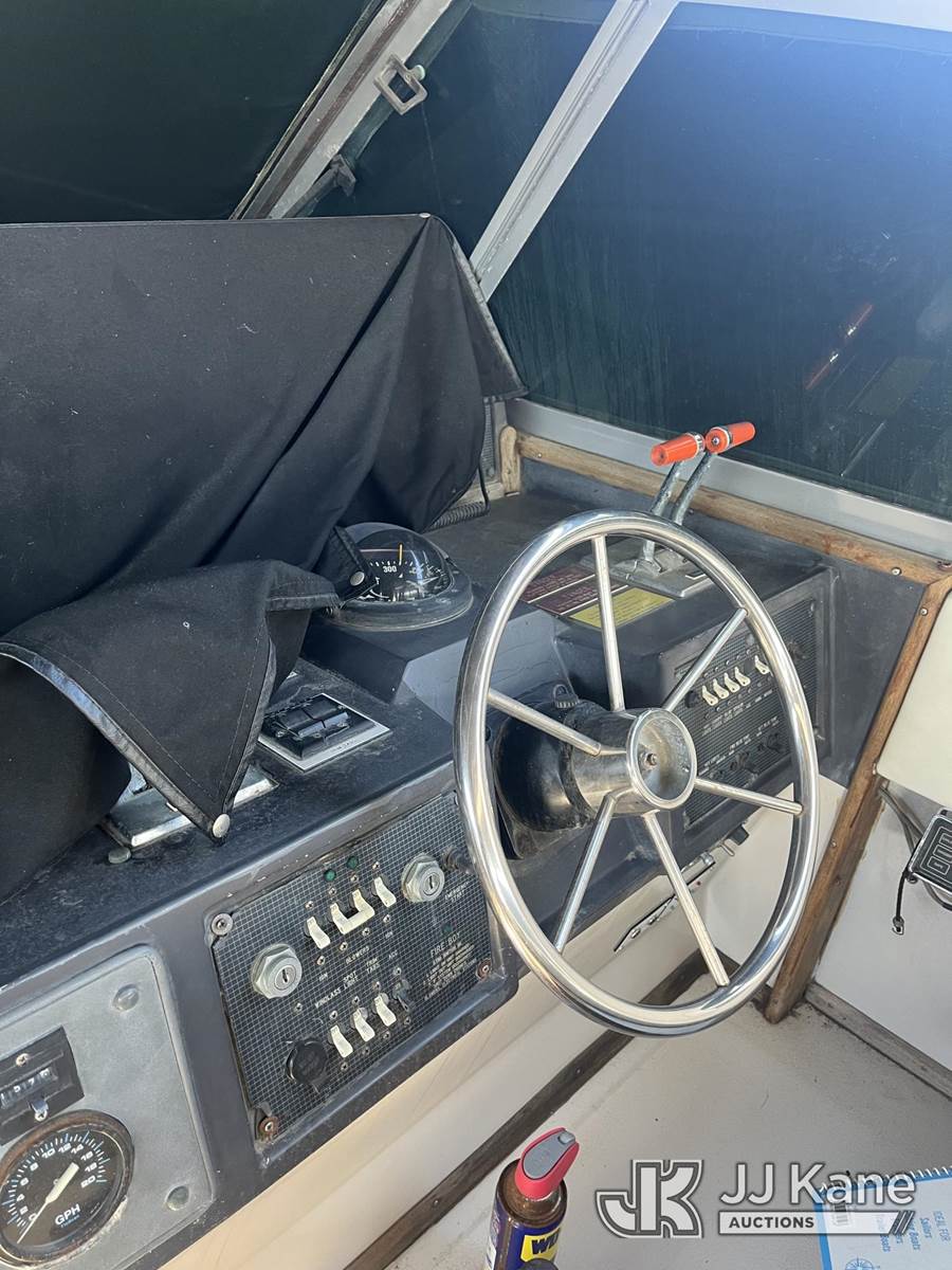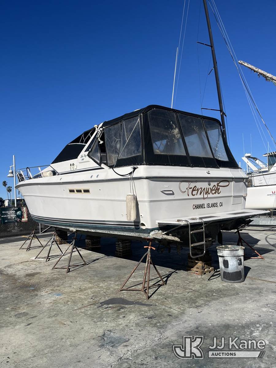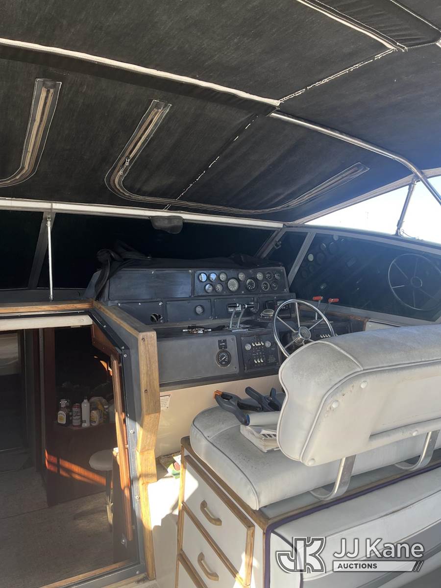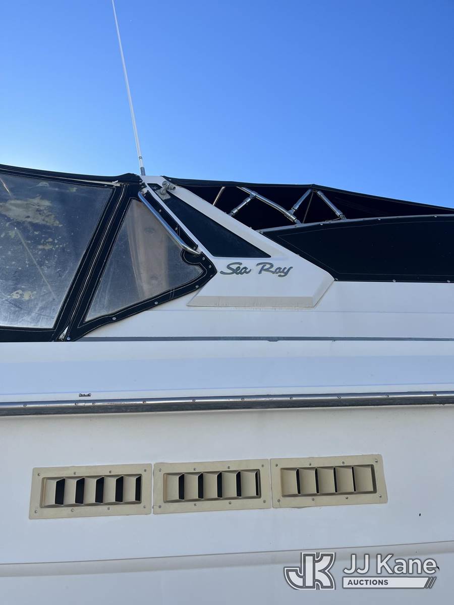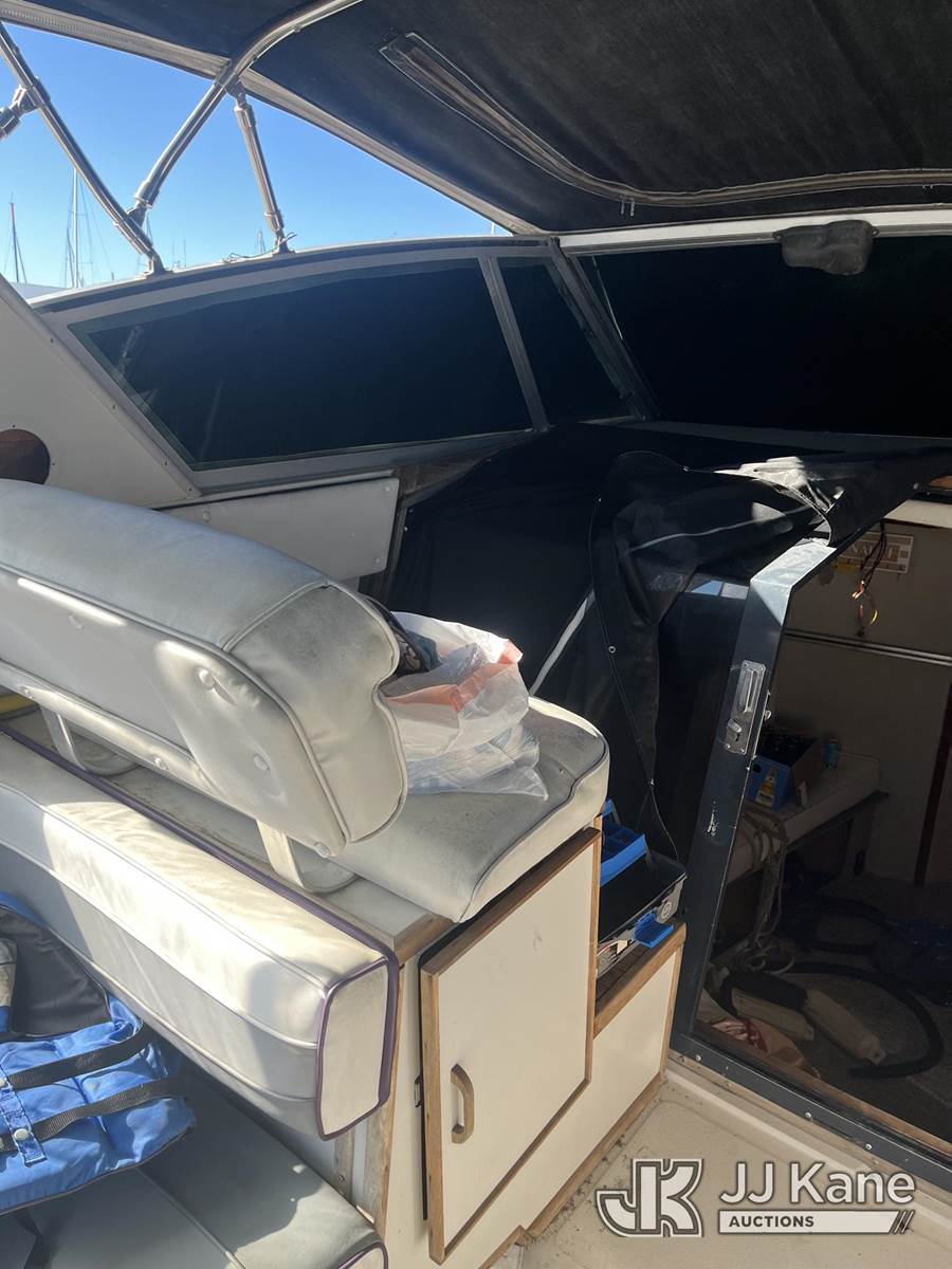 1986 Sea Ray PC-390-EC-596 5.2L gas, Hydraulic Drive, A/C, with 390 Express Cruiser 39', twin engines Mercuries,, (Condition Unknown) (Reads 1,493 hours) This is a Titled Item NOTE: This unit is being sold AS IS/WHERE IS via Timed Auction and is located in Oxnard, CA. (Buyer is responsible for removal. Assistance by consignor or JJ Kane Auctions is not assured.)