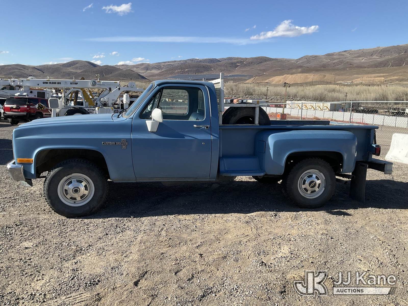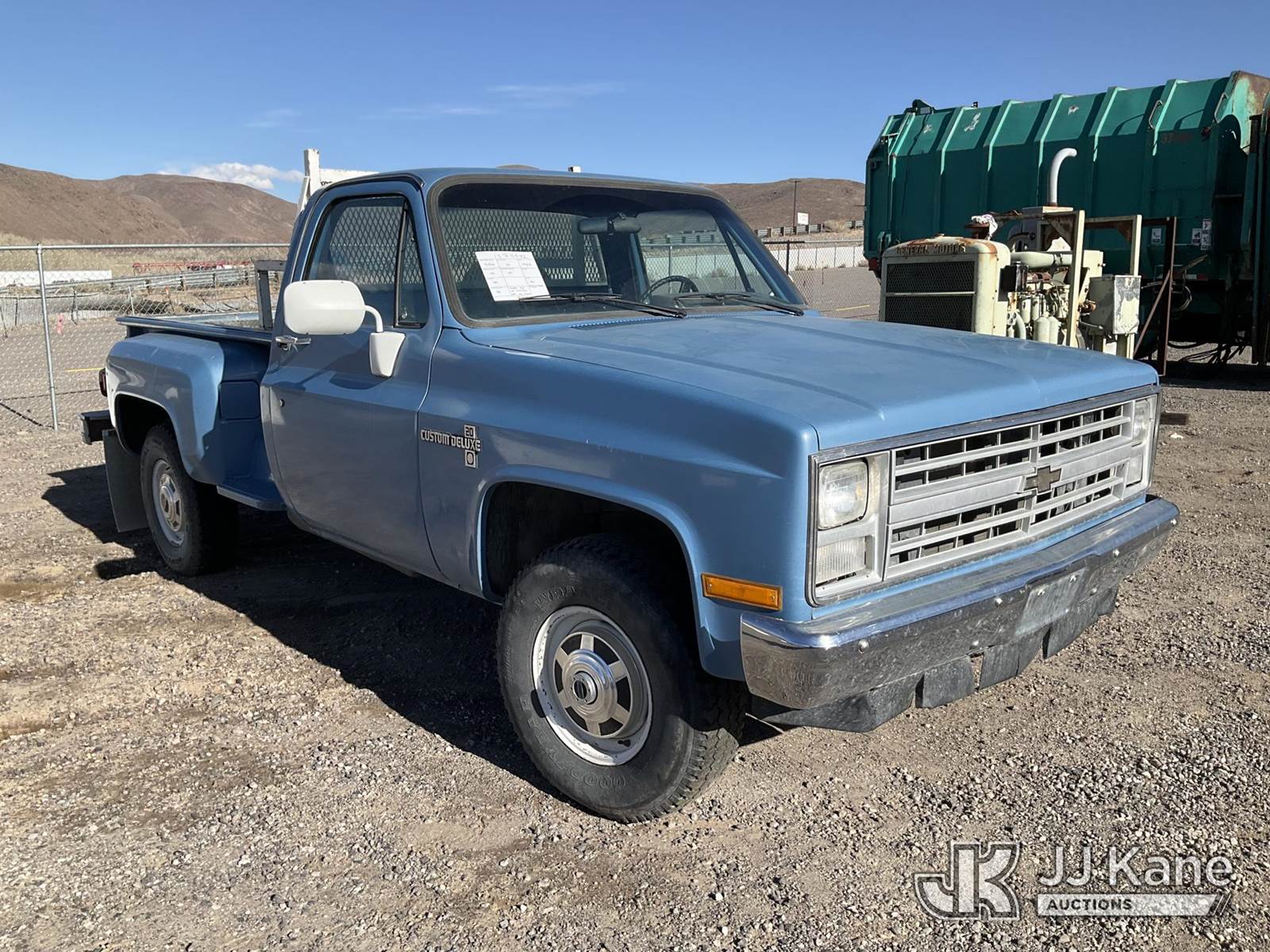 1987 Chevrolet V20 4x4 Pickup Truck, 5.7L V8 OHV 16V gas, 3-spd, (Exempt from Odometer Disclosure - Reads 33,714 miles) (Runs & Moves) (Jump To Start) (Seller States: Rear Differential Leak, Dead Battery, Dents Throughout, Warped Bed) This is a Titled Item NOTE: This unit is being sold AS IS/WHERE IS via Timed Auction and is located in Sparks, NV. Inspection & preview days for this unit are the 2 business days prior to the first day of items closing for this auction, item is located at 601 Britain Dr Sparks, NV 89437 and hours of operations are 8a-4p. Titles executed exactly as bidder registered. Ensure your name and/or business name and address in JJ Kane and/or ProxiBid is correct before bidding. For pre-sale questions, please contact Office Staff @ (801) 519-0123 and provide sale date and lot number. Sparks Dealer License Number DLR000052908 / OHV000052909. (Buyer is responsible for removal. Assistance by consignor or JJ Kane Auctions is not assured.)