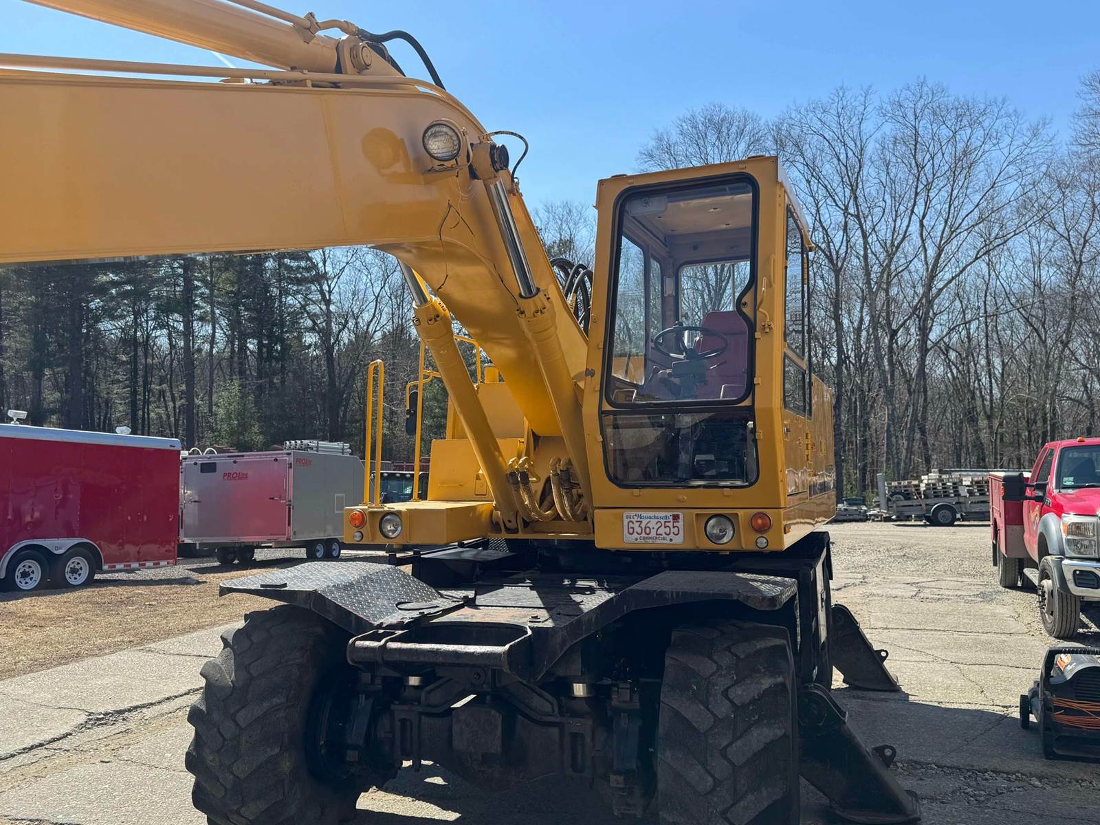 1987 Wheeled Excavator, 5900 hours, Komatsu 2238 engine 50 HP, Bucket width 35", Back blade 88", Boom 11' 8", Stick 5' 5", cab back window...