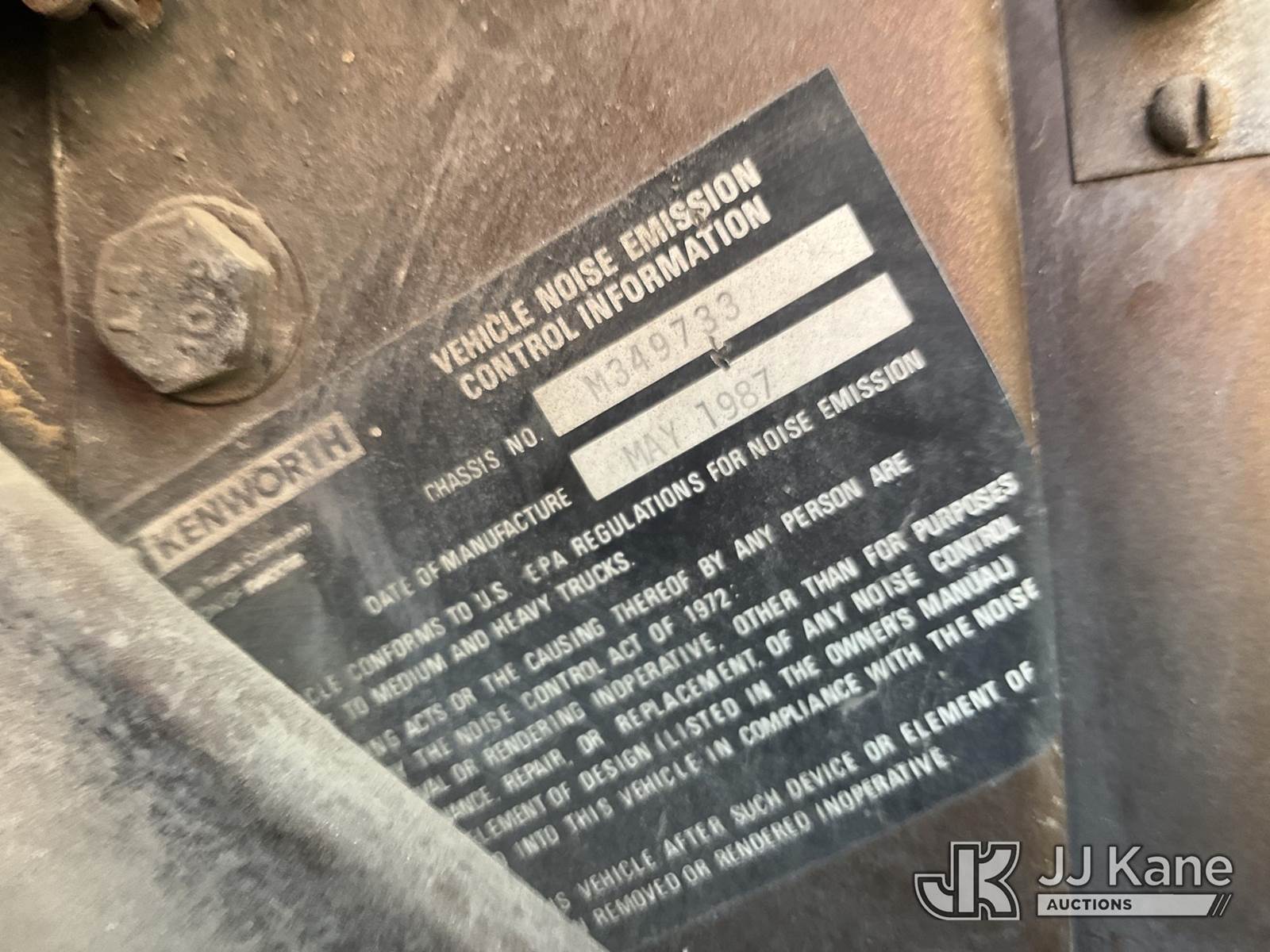1987 Kenworth C500 T/A Tank Truck, Cat diesel, manual, A/C, (Exempt from Odometer Disclosure - Reads 294,185 miles) (Runs & Moves) This is a Titled Item NOTE: This unit is being sold AS IS/WHERE IS via Timed Auction and is located in Ocala, FL. Inspection & preview days for this unit are by appointment only; please contact us at contact@jjkane.com or 84-Go-JJKane for more details. For more information & removal arrangements please contact Mike Lessard @ (352) 629-6677. (Buyer is responsible for removal. Assistance by consignor or JJ Kane Auctions is not assured.)