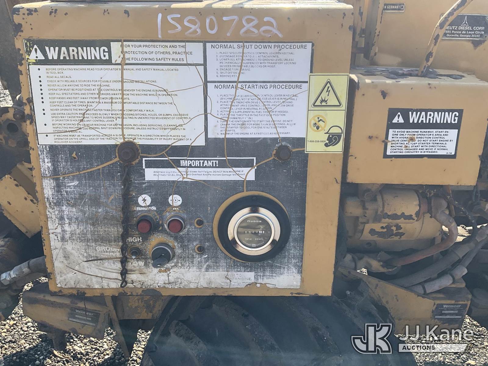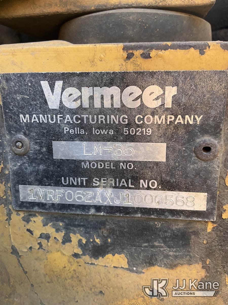 with 1VRH030S8J1000538, 1988 Vermeer LM35 Walk Beside Articulating Combo Trencher/Vibratory Cable Plow, s/n 1VRF062AXJ1000568, Deutz diesel, Hydrostatic, with trencher boom, vibratory plow attachment, boring attachment, (Runs, Moves, Operates)(Trencher Does Not Lower-Condition Unknown) (Reads 723 hours) NOTE: This unit is being sold AS IS/WHERE IS via Timed Auction and is located in South Beloit, IL. Inspection & preview days for this unit are the 2 business days prior to the first day of items closing for this auction, item is located at 14354 Dearborn Ave South Beloit, IL and hours of operations are 8a-4p. For pre-sale questions, please contact Derek Eklund at (608) 904-0618 or (derek.eklund@jjkane.com). (Buyer is responsible for removal. Assistance by consignor or JJ Kane Auctions is not assured.)