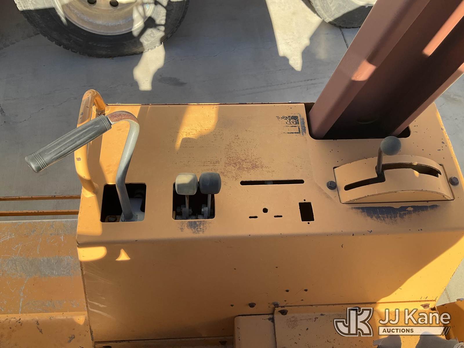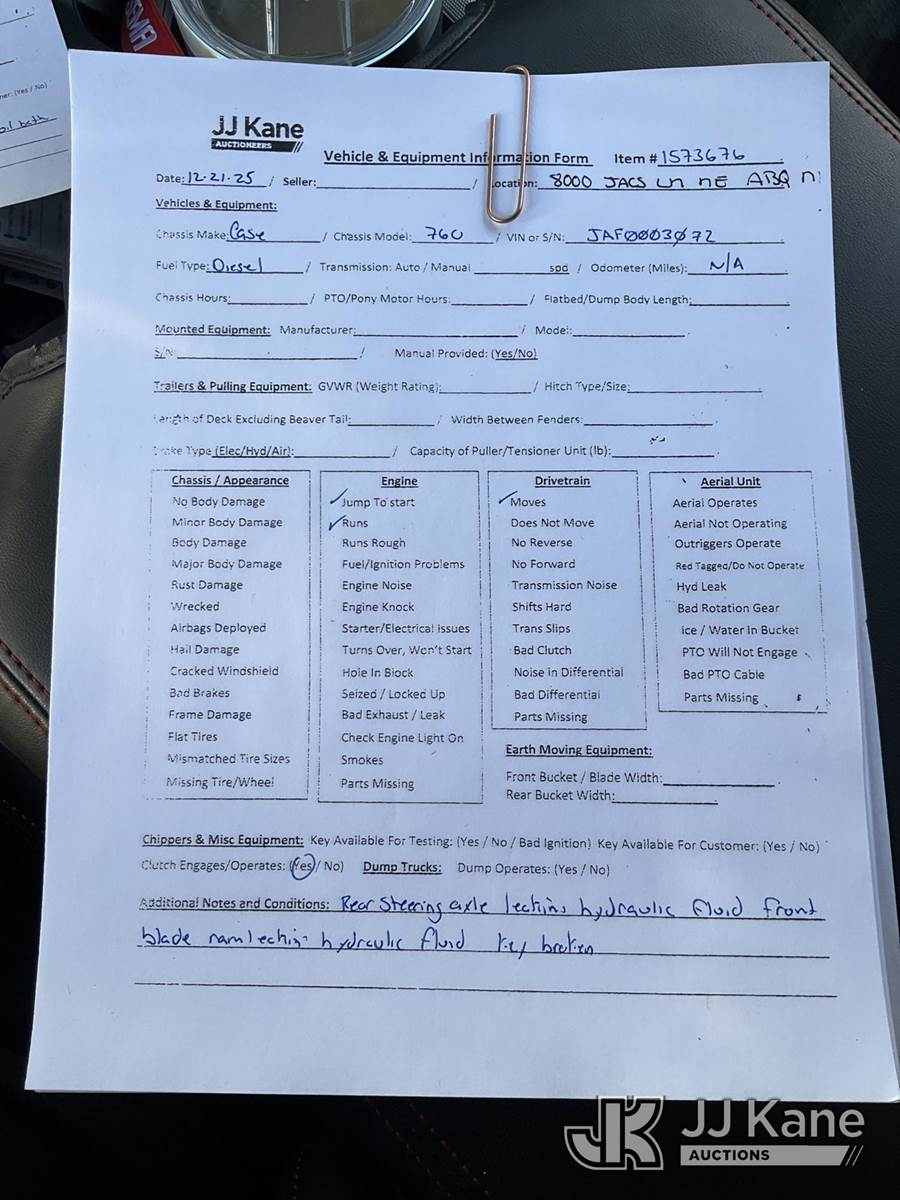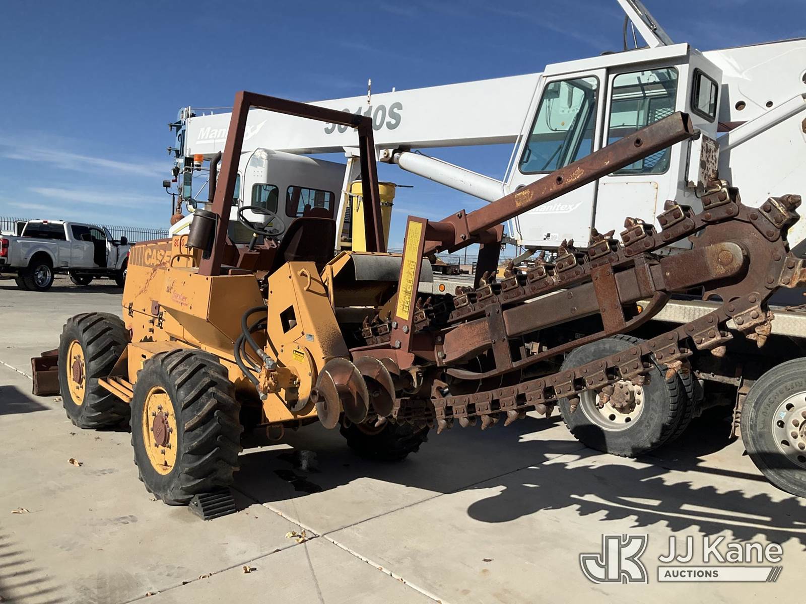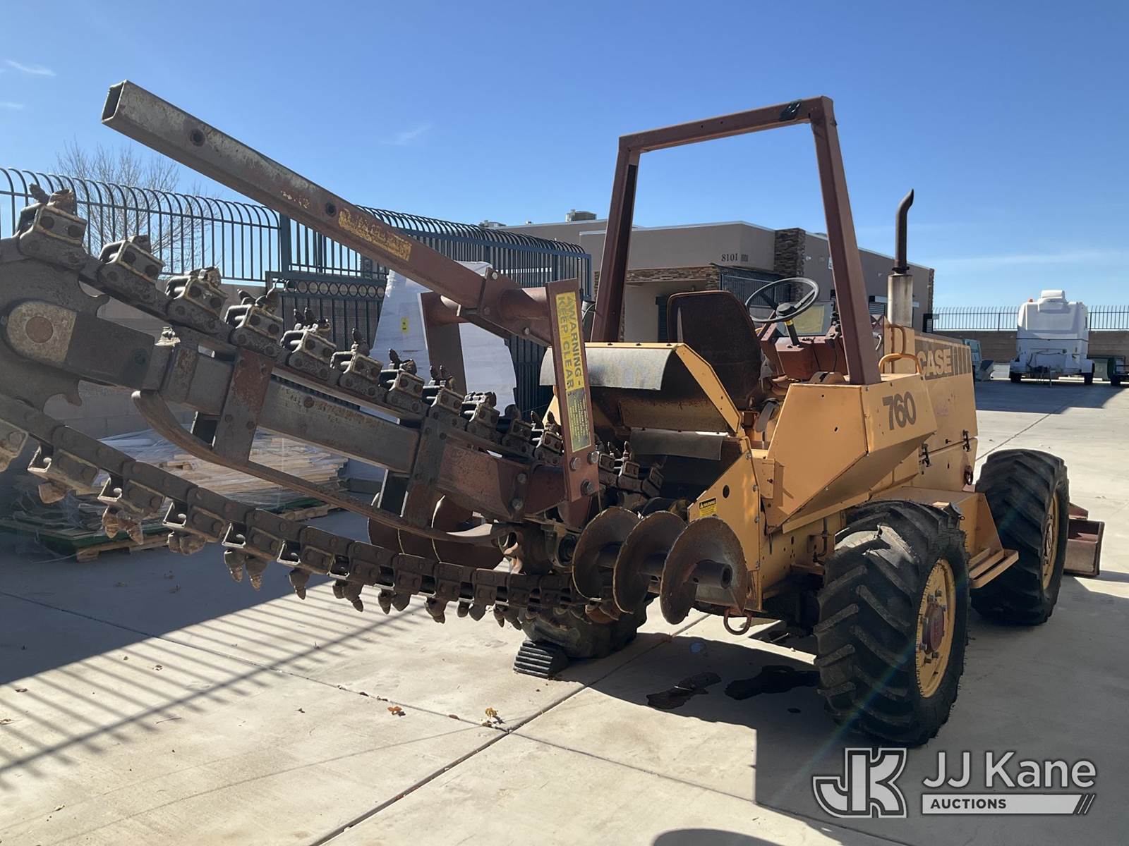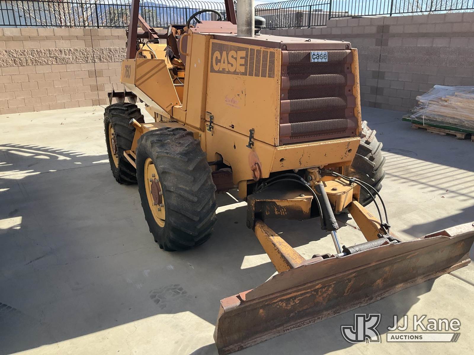 1989 Case 760 Rubber Tired Trencher, s/n JAF0003072, diesel, Hydrostatic, with backfill blade, ROPS posts, (Runs & Moves) (Jump To Start, Rear Steering Axle, Leaking Hydraulic Fluid Front Blade Ram Leaking Hydraulic Fluid) NOTE: This unit is being sold AS IS/WHERE IS via Timed Auction and is located in Albuquerque, NM. Inspection & preview days for this unit are by appointment only; please contact us at contact@jjkane.com or 84-Go-JJKane for more details. (Buyer is responsible for removal. Assistance by consignor or JJ Kane Auctions is not assured.)