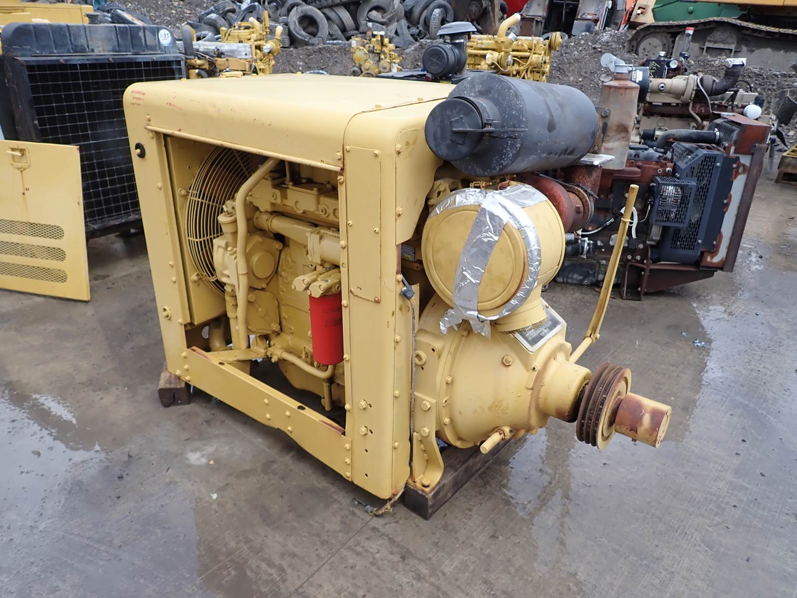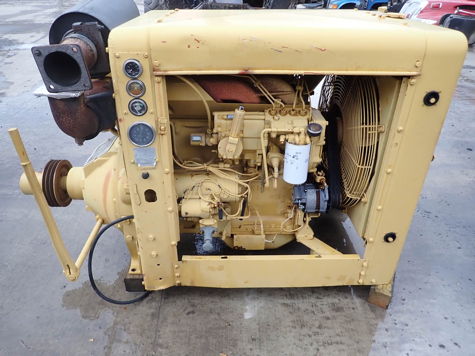 1988 Caterpillar 3304 DI diesel engine, turbocharged, mechanical fuel system, arrangement # 1W-3871 (1W3871,) complete power unit w/ radiator, panel, power take off clutch, enclosure and other accessories as pictured, direct injection, 165 HP at 2200 RPM, removed from a pump unit with 369 ORIGINAL HOURS ON MECHANICAL PUMP METER !!! THE WHOLE ENCHILADA HERE INCLUDING A TWIN DISC PTO CLUTCH !! HOOK UP YOUR BATTERY AND A FUEL JUG AND YOU ARE READY TO GO !! ONE OF A KIND SETUP WITH THESE HOURS AND IN THIS CONDITION !! TEST RAN EXCELLENT AS EXPECTED. Clean runner, no smoke or blowby observed, see video. USE SHORT BLOCK # 0R2080 (0R-2080) FOR REFERENCE, WILL INTERCHANGE W/ THE FOLLOWING APPLICATIONS: 215D, 219D, 225D AND 229D EXVAVATORS 963 TRACK LOADERS 518 AND 527 SKIDDERS 3304 AND 3304B INDUSTRIAL ENGINES 936, 936E, 936F, 950B AND 950E WHEEL LOADERS WILL ADAPT TO OTHER APPLICATIONS AS WELL INCLUDING THE MAJORITY OF 3304 DI CONSTRUCTION ENGINES.