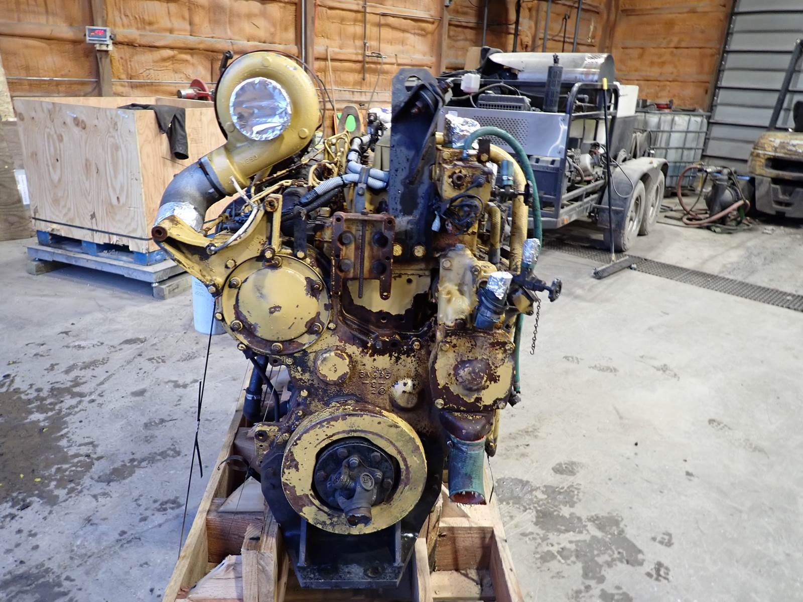 1989 Caterpillar 3306 diesel engine, turbocharged, air to air aftercooled, 300 HP at 2000 RPM rating, arrangement # 7C-4673 (7C4673,) SAE #1 flywheel housing, front sump, high torque, on-road truck applications. TEST RAN CLEAN, SEE VIDEO. NO SMOKE OR BLOWBY OBSERVED DURING COLD TEST RUN. 80 PSI OIL PRESSURE AT IDLE AND 100+ PSI AT FULL THROTTLE. CLEAN RUNNING ENGINE. THIS ENGINE WILL INTERCHANGE W/ MANY INDUSTRIAL & EQUIPMENT SPECS -- CONTACT US FOR HELP W/ INTERCHANGE !!