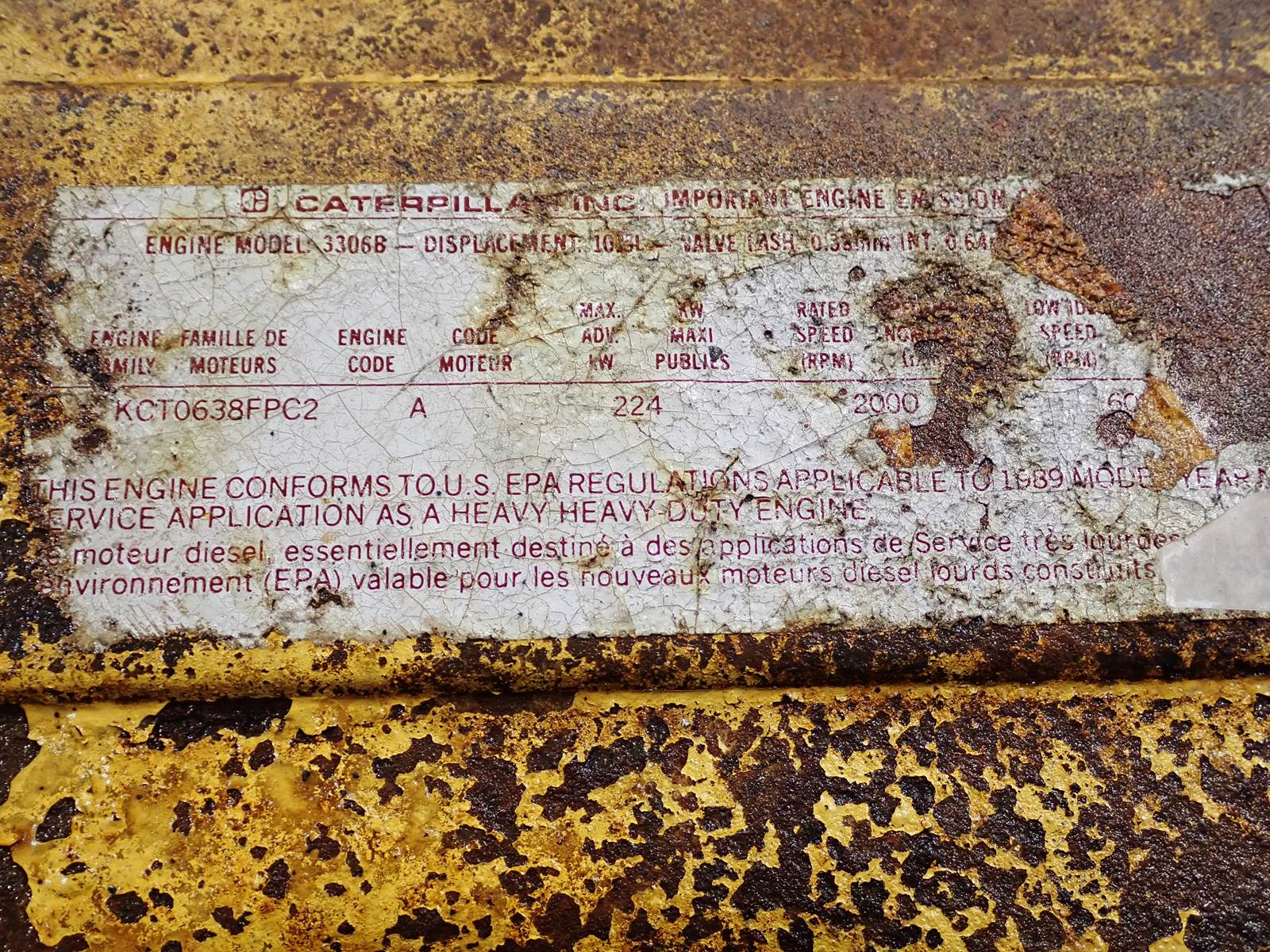 1989 CAT 3306 DITAAC 300 HP Truck Engine