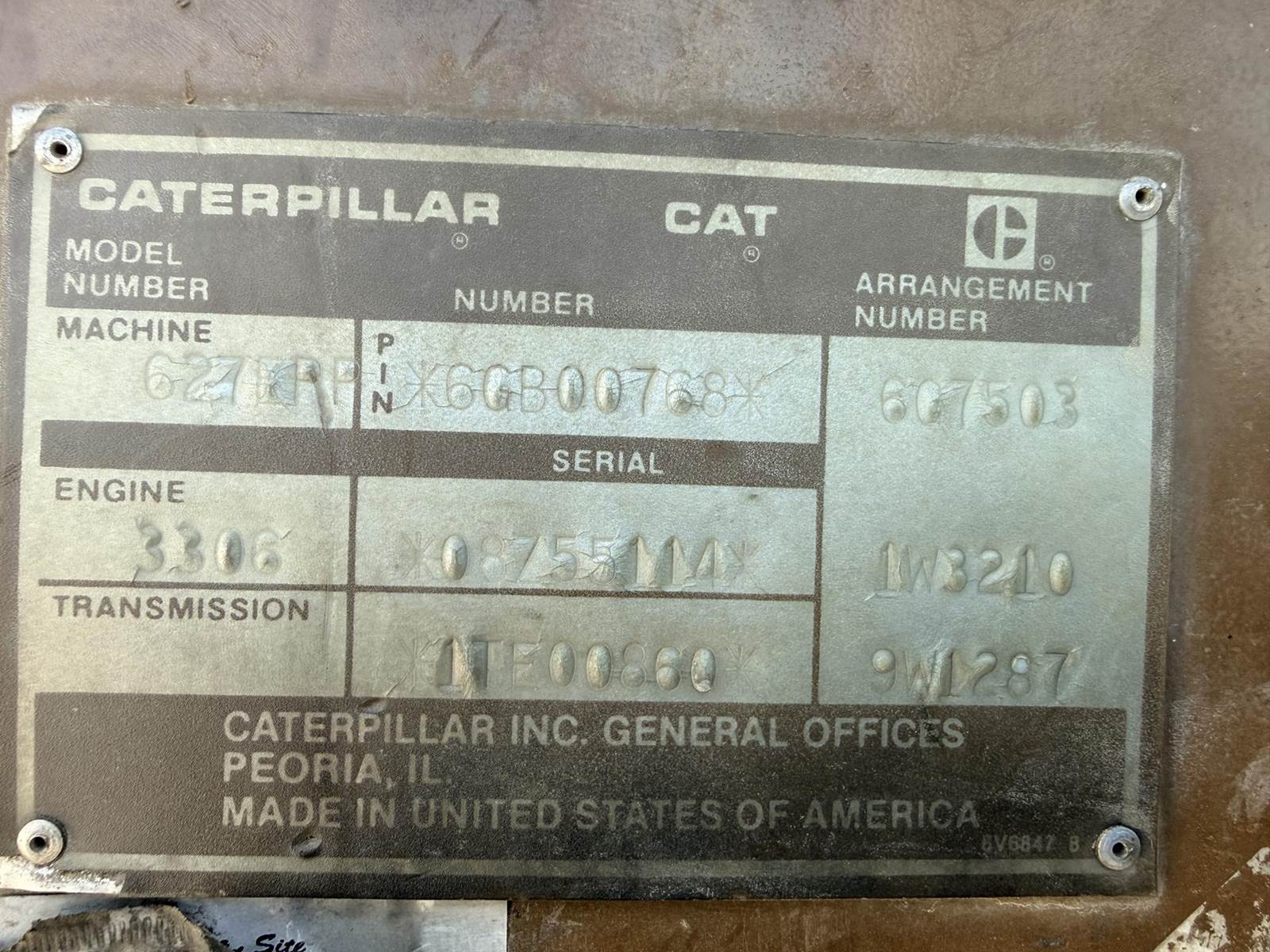 1989 Caterpillar 627E Motor Scraper