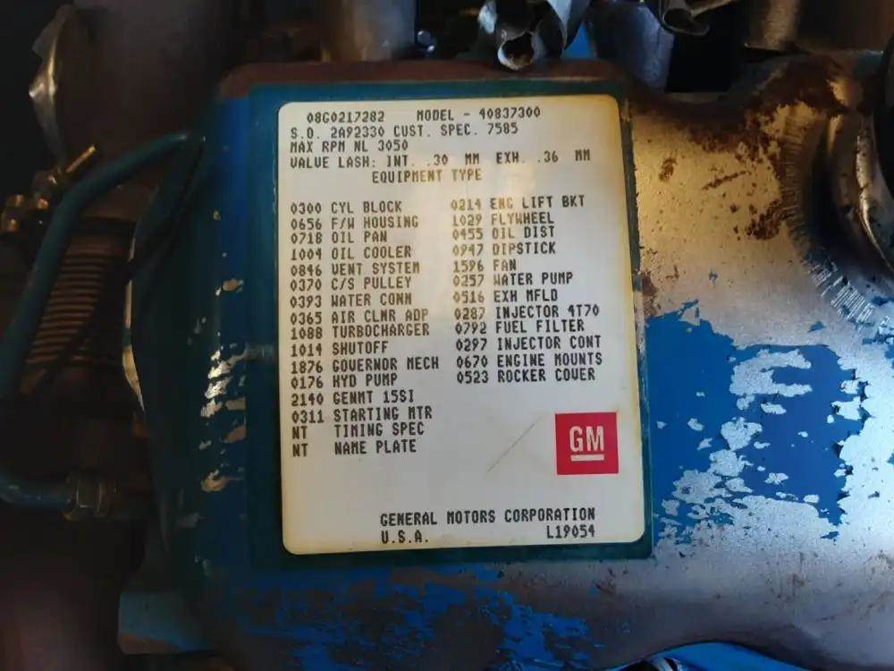 1989 GM 8.2 T Engine Model, S/N 08G021782