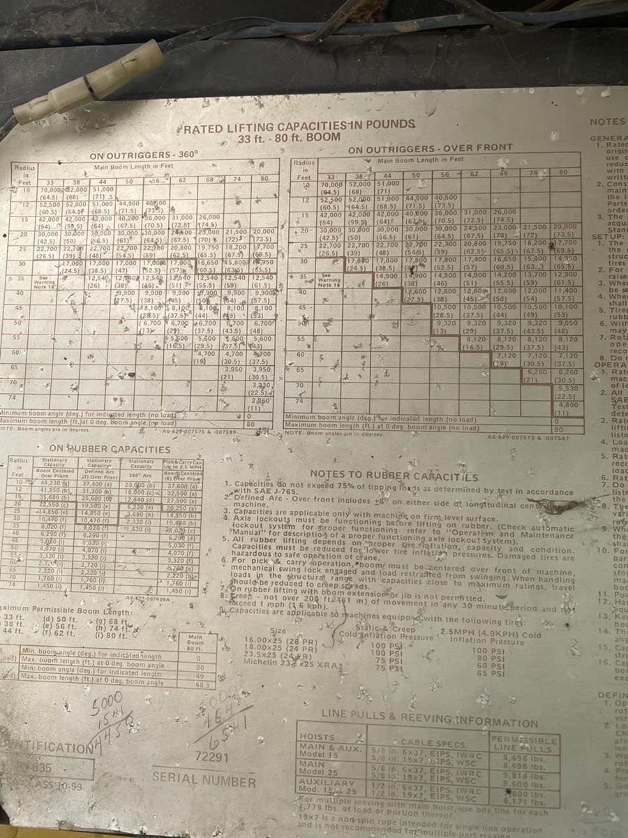 40 Ton Capacity,, 4x4, 4 wheel steer,, Cummins Diesel,, Hour meter reads - 1644 Rebuilt in 2003 Last Certified May 2023