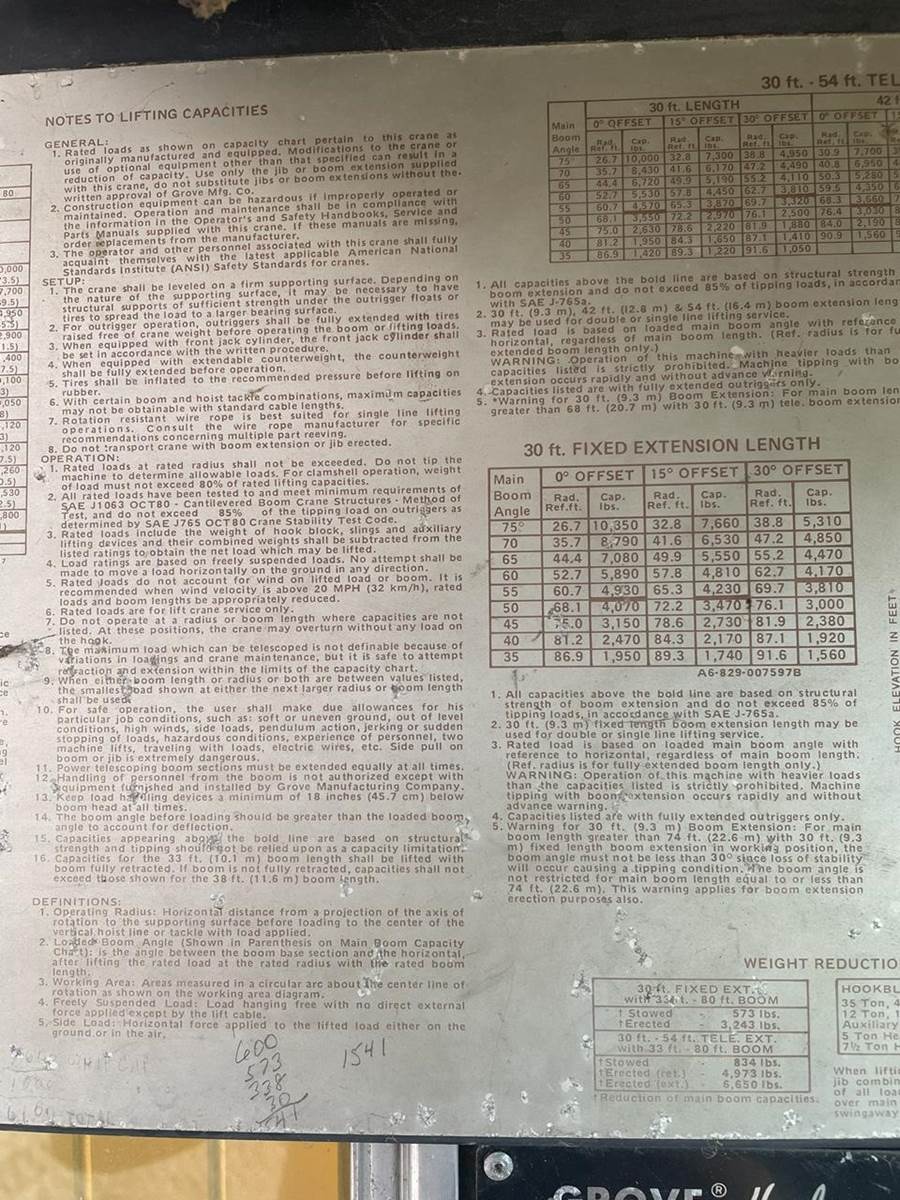 7.5 Ton Capacity, 458 hmr, 21.75’ Minimum Boom Length, 35.75' Maximum Boom Length, Heater, Load Moment Indicator, Cummins Diesel Engine,...
