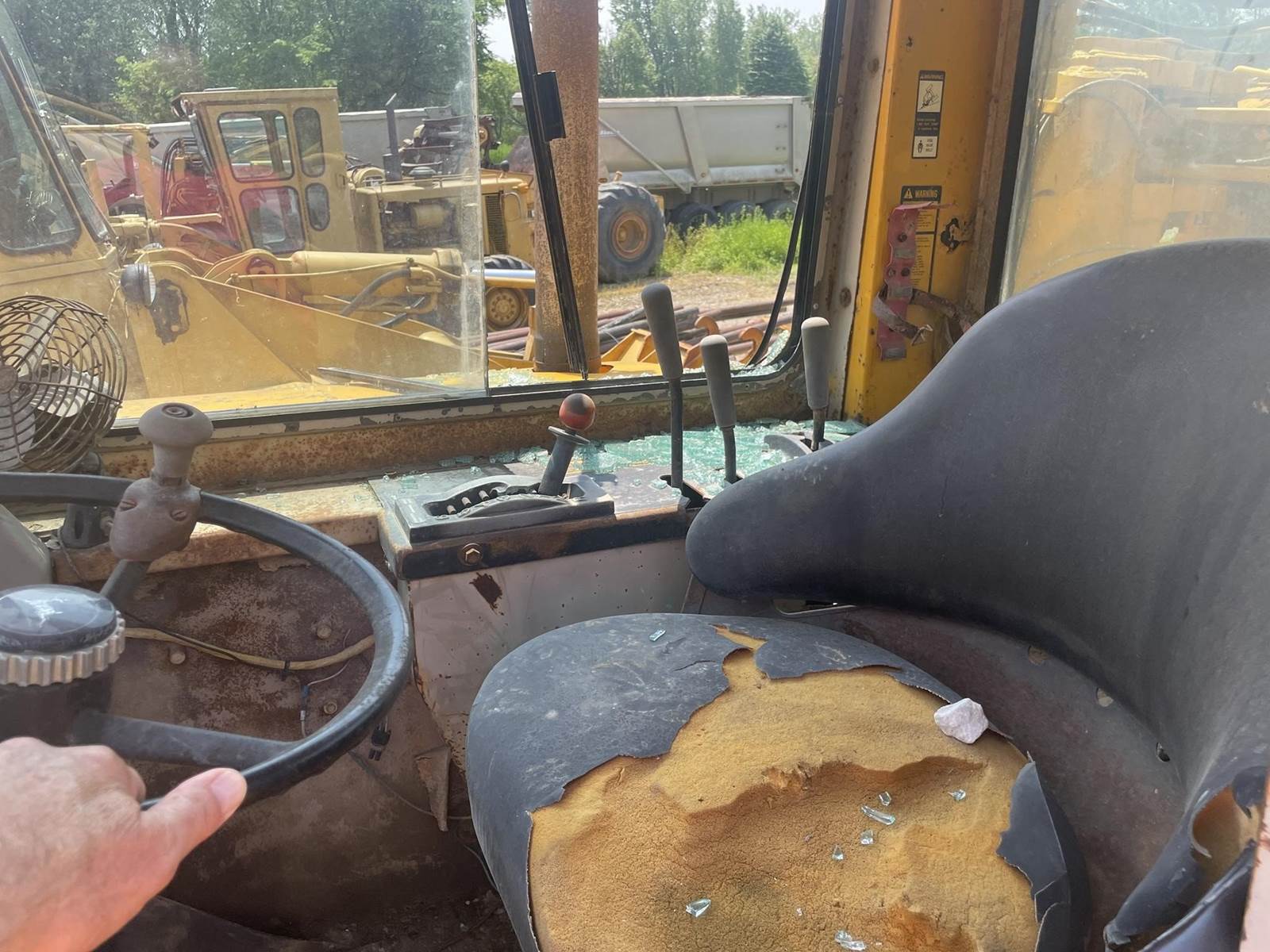 **CAB (SOME BROKEN GLASS), HEAT, 12,055 HOURS, 26.5X25 TIRES, 6 SPEED POWERSHIFT TRANS, JD DIESEL, 17 CUBIC YARD CAPACITY. MACHINE IN FAIR TO GOOD CONDITION FOR AGE!**