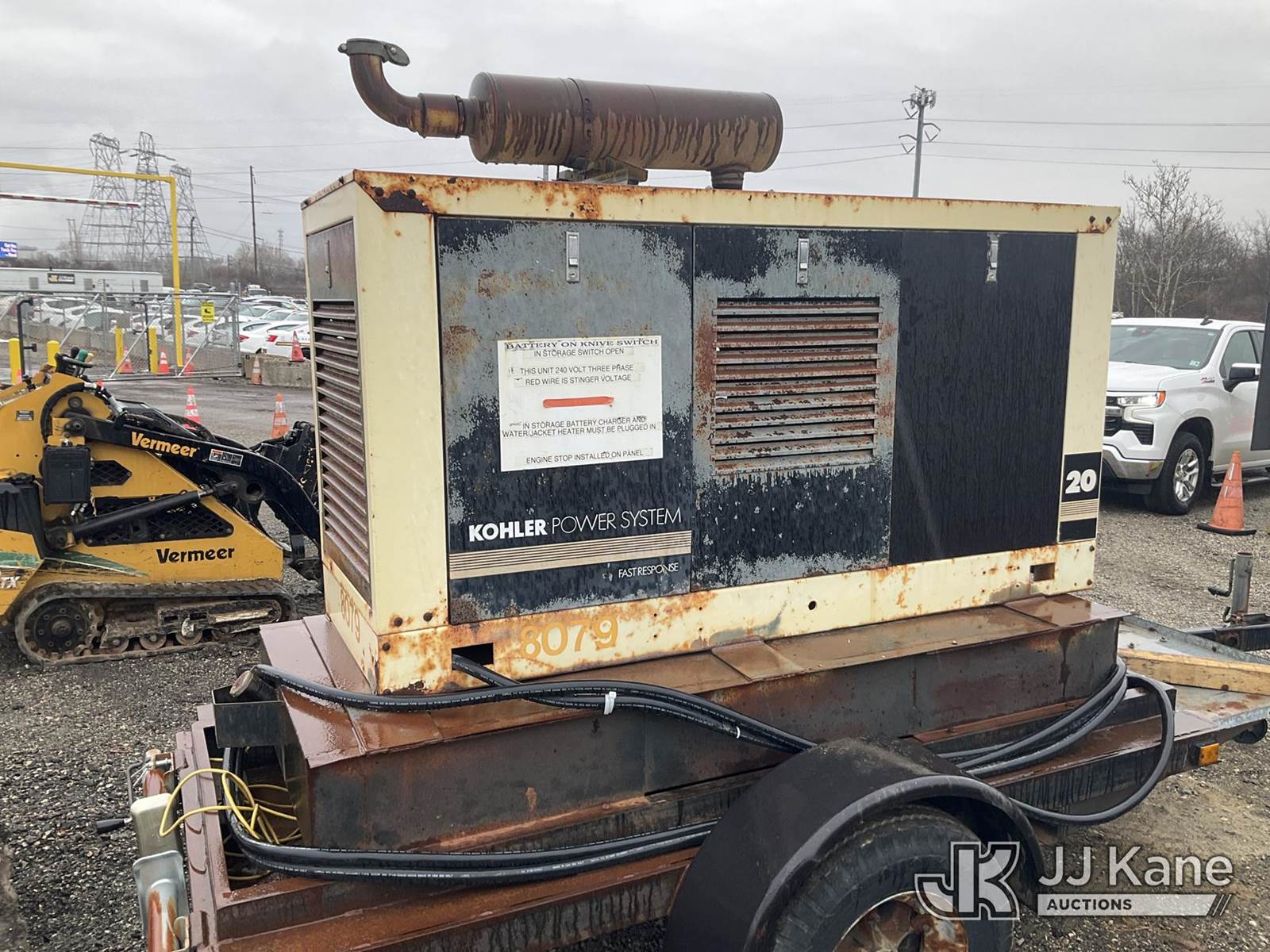 1989 Kohler Generator 20kw Portable Generator, s/n L890206151718, diesel, with 240v 3ph, (No Title) (Runs, Jump To Start, Generator Condition Unknown) (Reads 4,504 hours) NOTE: This unit is being sold AS IS/WHERE IS via Timed Auction and is located in Plymouth Meeting, PA. Inspection & preview days for this unit are the 2 business days prior to the first day of items closing for this auction, item is located at 1402 Conshohocken Rd Plymouth Meeting, PA 19462 and hours of operations are 8a-4p. For pre-sale questions, please contact Bruce Thomas @ (267) 887-0392 or bruce.thomas.jr@jjkane.com. (Buyer is responsible for removal. Assistance by consignor or JJ Kane Auctions is not assured.)