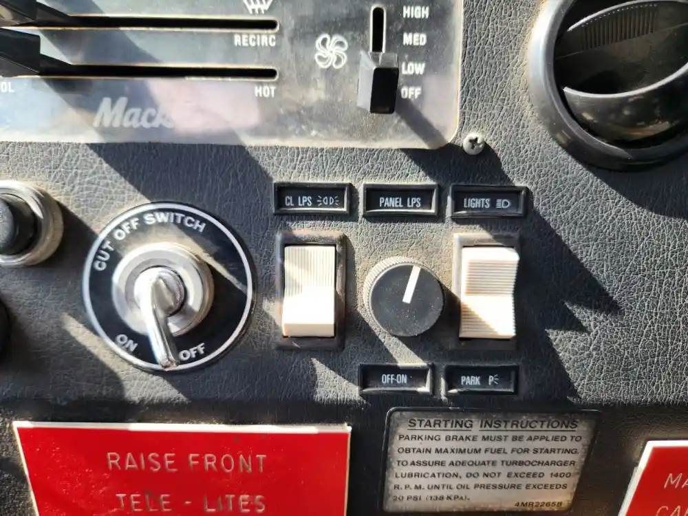 (Used) 1989 Mack MC688FC, MISCELLANEOUS DASH SWITCHES- Controls: PTO Shift, PTO Engage, Hatch Open, Eng Brake, Eng Start, Lock, Ignition Switch, CL Lps, Panel Lights, Headlights, Park Lights, Wiper Washer, Material: Aluminum and Plastic, Reference images for condition, For more information about this item, give us a call. We ship Worldwide! (CRG HEAVY TRUCK PARTS) 929 W PULASKI HWY ELKTON, MD 21921, Material: Aluminum and Plastic