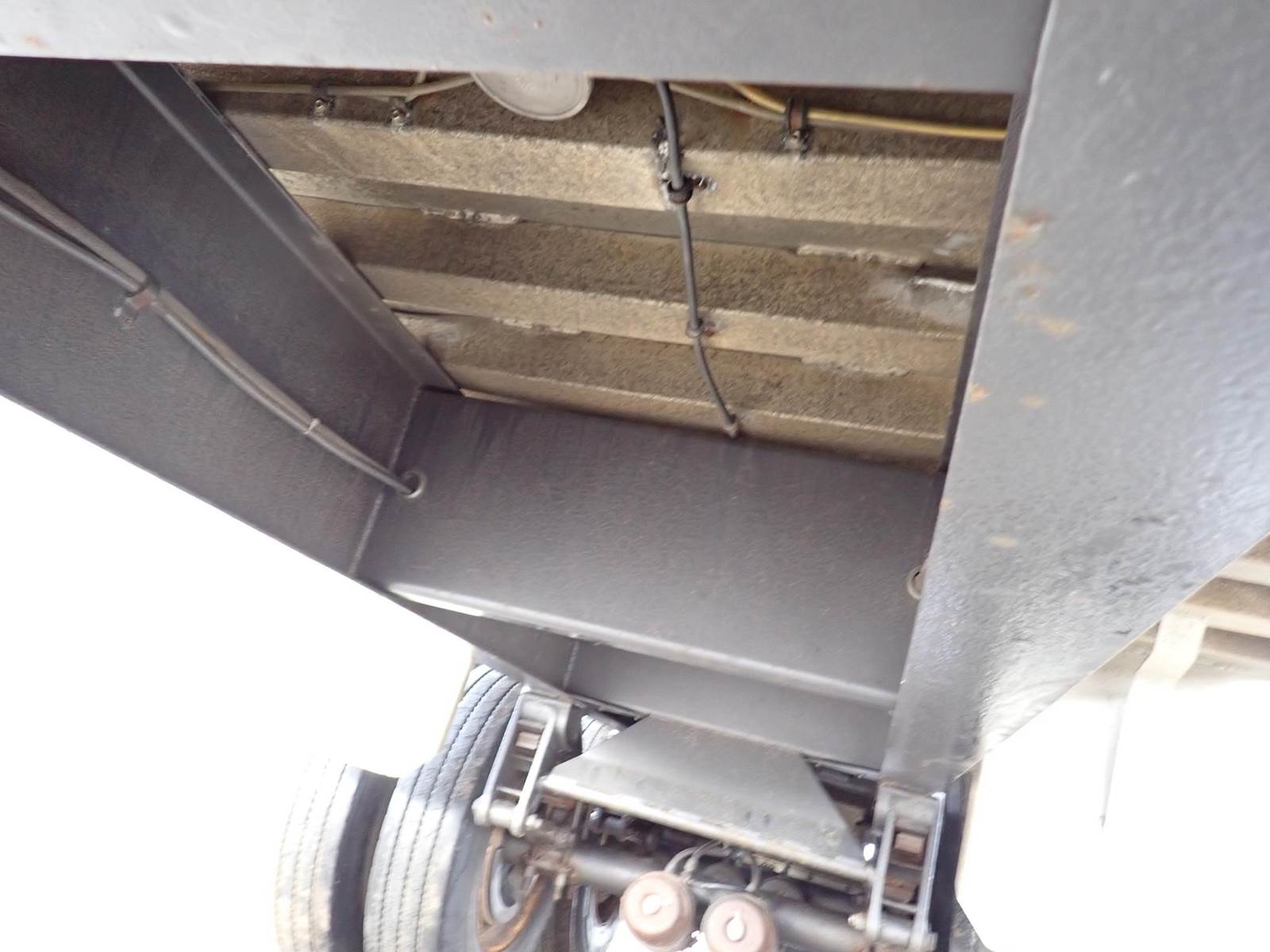 tandem axle dump trailer, 26 ft steel tub, steel frame, aluminum wheels, spring suspension,