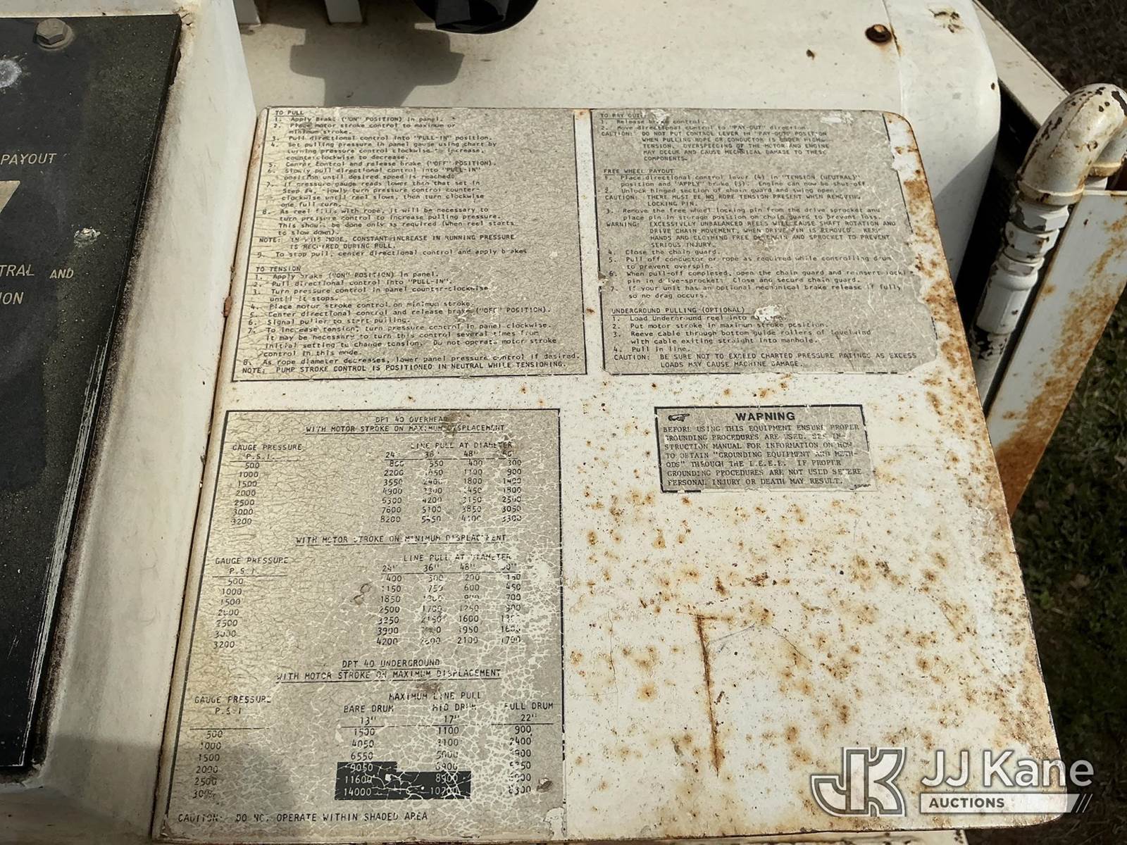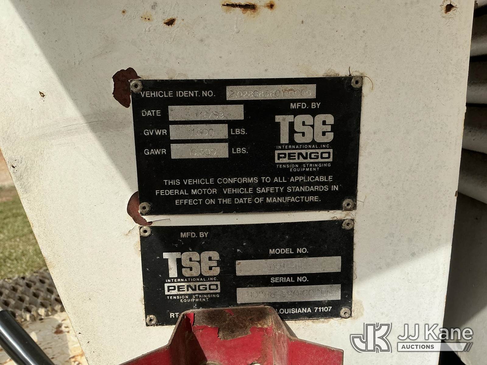 1989 TSE DPT-40 Single-Drum Puller/Tensioner, Hercules Coop Unit (Runs, Moves, Operates) (Reads 606 hours) This is a Titled Item NOTE: This unit is being sold AS IS/WHERE IS via Timed Auction and is located in Jefferson, GA. For more information & removal arrangements please contact JT Thomas @ 762-291-7932. Removal by appointment only made at least 24 hours in advance, Buyer/Hauler must present copy of paid invoice upon arrival. Purchaser acknowledges ALL lots must be removed within 7 business days of Auction, or a storage fee may be incurred. For Removal and Pick Up information, please reference the release form sent out after purchase. (Buyer is responsible for removal. Assistance by consignor or JJ Kane Auctions is not assured.)