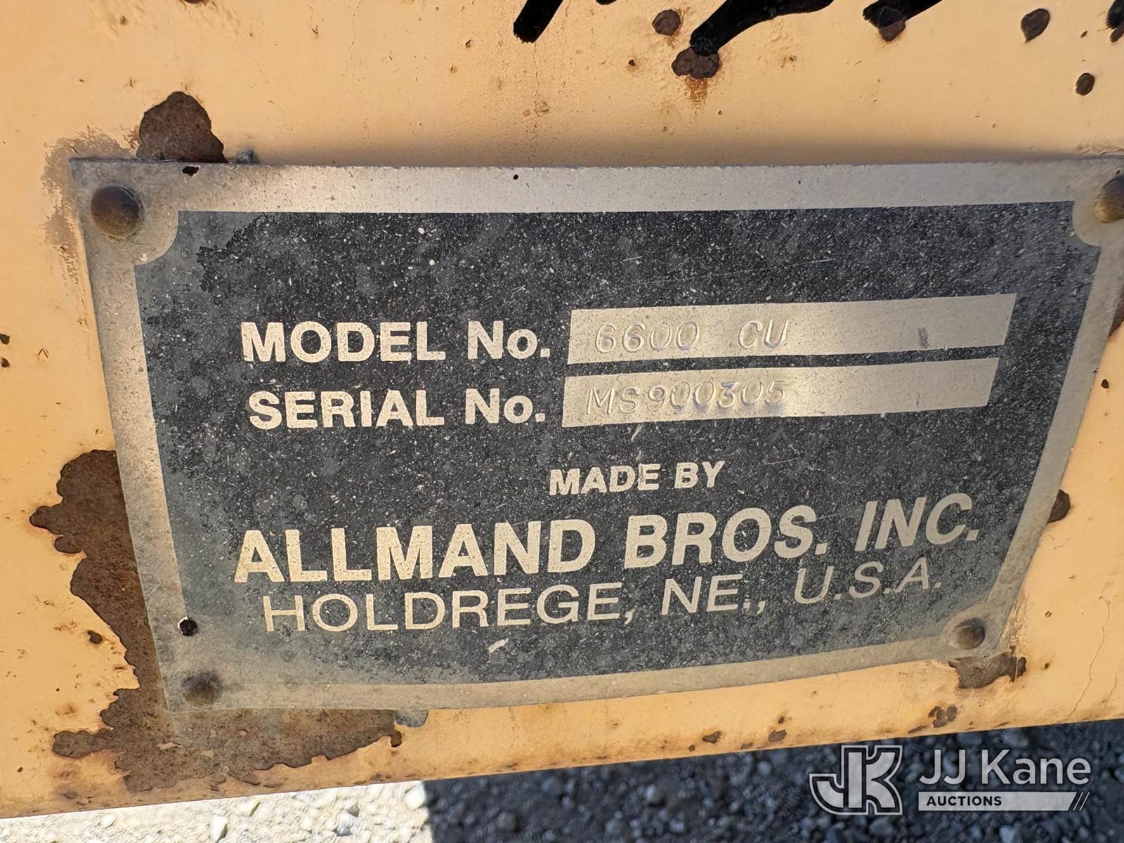 1990 Allmand 6600 CU Street Sweeper, s/n MS900305, Cummins diesel, Hydrostatic, with water tank, 1990 Allman Self Propelled Road Brooms (Runs, Moves, Operates) ( surface rust, paint damage) ) (Reads 2,086 hours) NOTE: This unit is being sold AS IS/WHERE IS via Timed Auction and is located in Sparks, NV. Inspection & preview days for this unit are the 2 business days prior to the first day of items closing for this auction, item is located at 601 Britain Dr Sparks, NV 89437 and hours of operations are 8a-4p. Titles executed exactly as bidder registered. Ensure your name and/or business name and address in JJ Kane and/or ProxiBid is correct before bidding. For pre-sale questions, please contact Office Staff @ (801) 519-0123 and provide sale date and lot number. Sparks Dealer License Number DLR000052908 / OHV000052909. (Buyer is responsible for removal. Assistance by consignor or JJ Kane Auctions is not assured.)