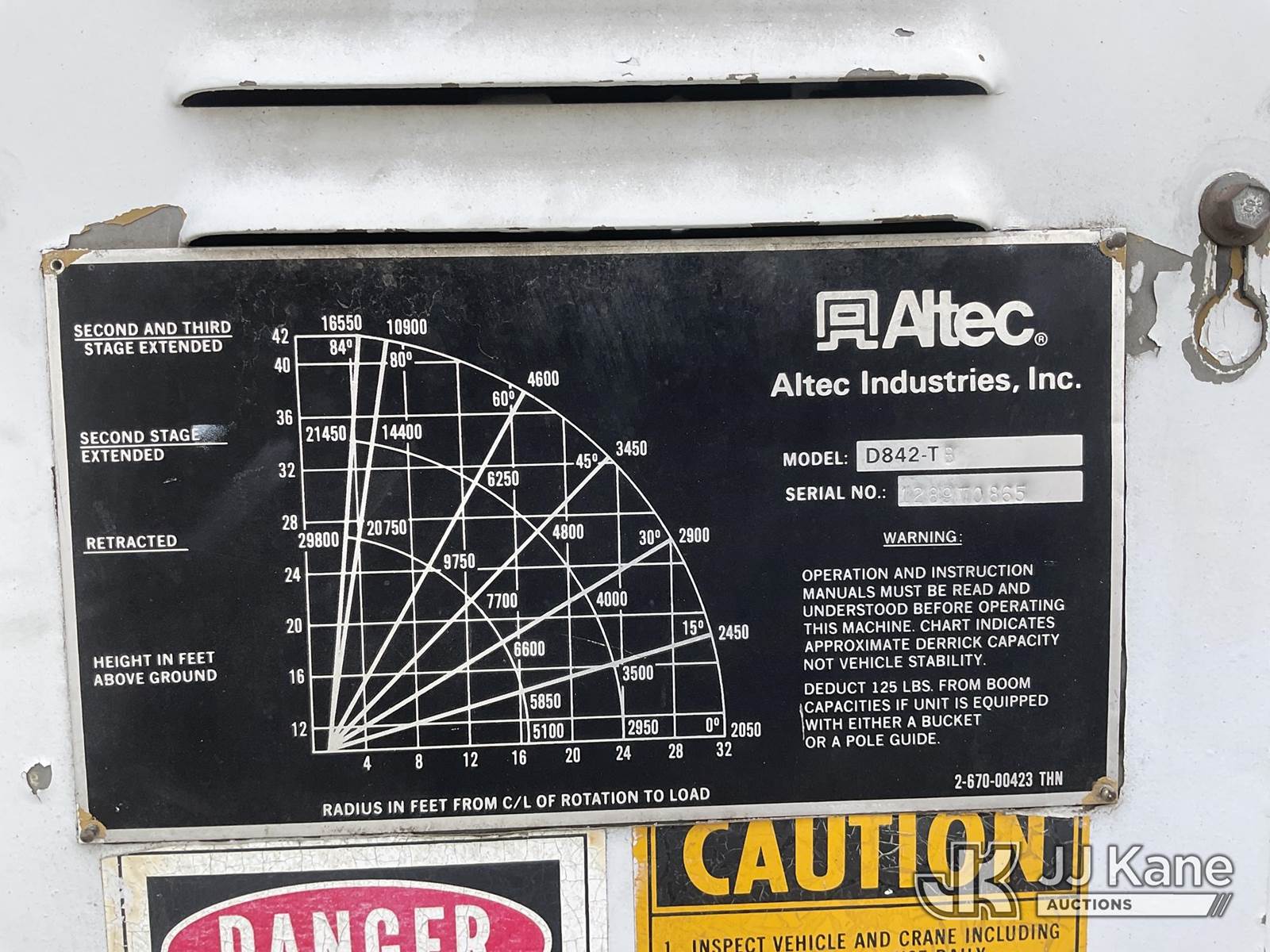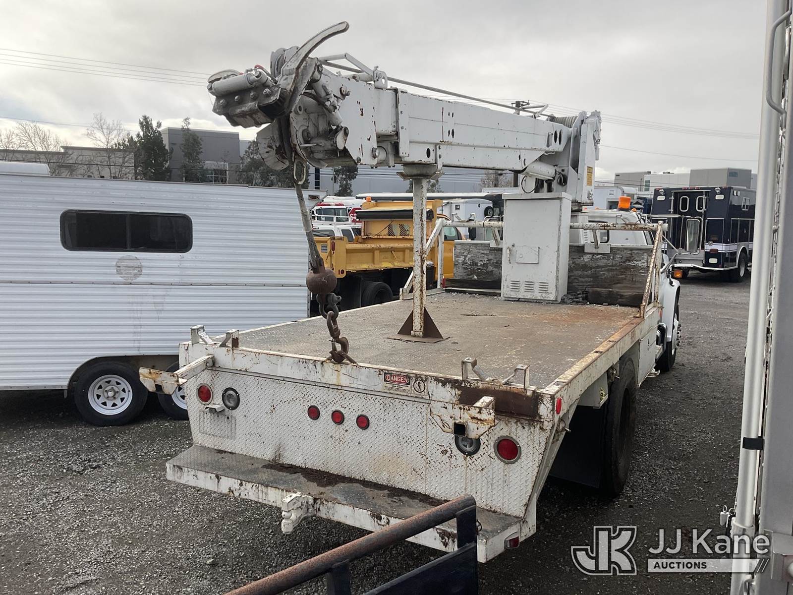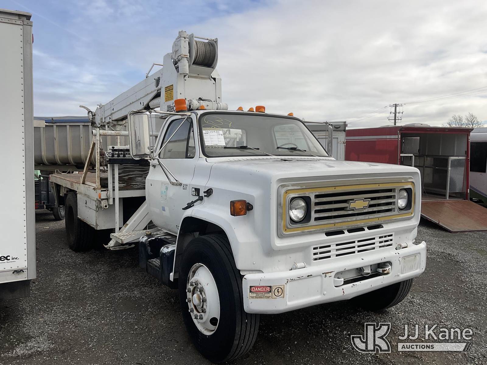 Altec D842-TB, 29,800 Lb Digger Derrick s/n 1289T0865, with pole guides, winch line & swivel hook, turn table mounted winch, 2 hyd outriggers, mounted behind cab on 1990 Chevrolet C7D042 Flatbed Truck, s/n 1GBM7D1G0LV102233, 8.2L V8 OHV 16V DIESEL Auto, 4X2, with tow package, (Exempt from Odometer Disclosure - Reads 25,316 miles) (Engine Runs, Does Not Move, Upper Condition Unknown) (Bad Charging System, Note: The OEM Has Deemed This Unit To Have Reached The End Of Service Life, And Will Not Provide Service For The Unit. Parts And/ Or Technical Support For The Unit May Be Limited.) (Bidding Restricted to Licensed Vehicle Dealers Only), Subject to CARB Regs,CARB non Compliant,Cannot Operate on CA Roads/Highways until Compliant This is a Titled Item NOTE: This unit is being sold AS IS/WHERE IS via Timed Auction and is located in Jurupa Valley, CA. Inspection & preview days for this unit are the 2 business days prior to the first day of items closing for this auction, item is located at 4510 Muth Way Jurupa Valley, CA 92509 and hours of operations are 8a-4p. For pre-sale questions, please contact please contact Office Staff @ (310) 353-7140. Dealer License Number 45696. (Buyer is responsible for removal. Assistance by consignor or JJ Kane Auctions is not assured.)
