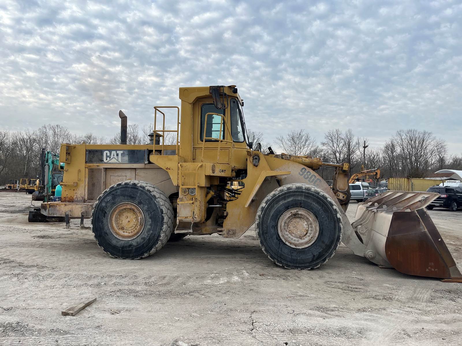 -Enclosed cab, -Partially dissembled for transport, -Includes 16' CAT spade nose tooth bucket