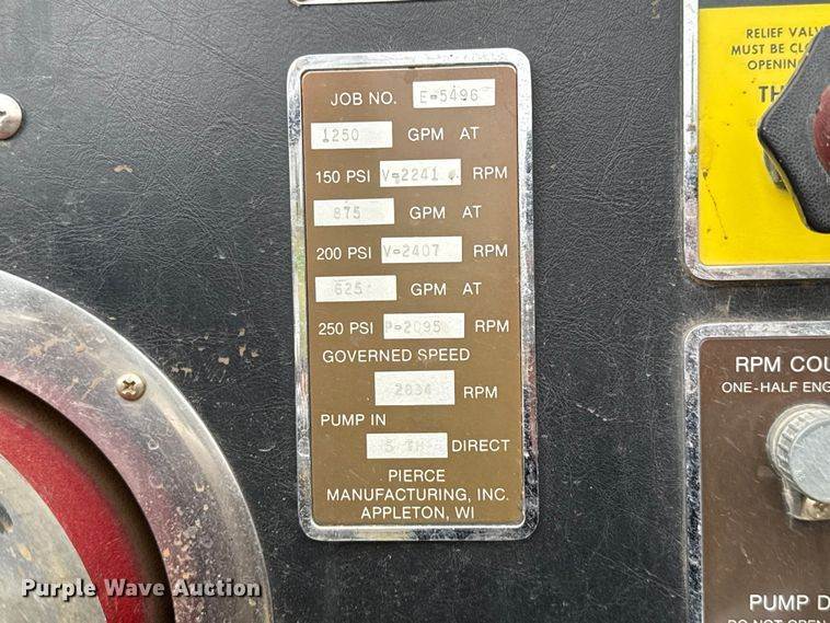 2000 E-One pumper fire truck, Miles: 96,379 on odometer, Hours: 4,735 on meter, Miles or hours may vary, unit still in use, VIN:...