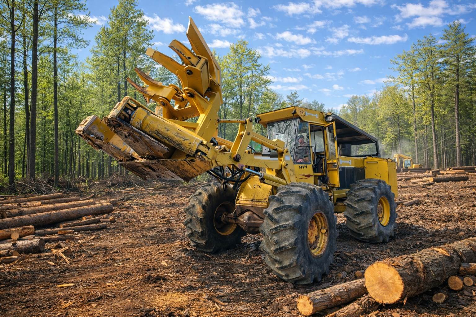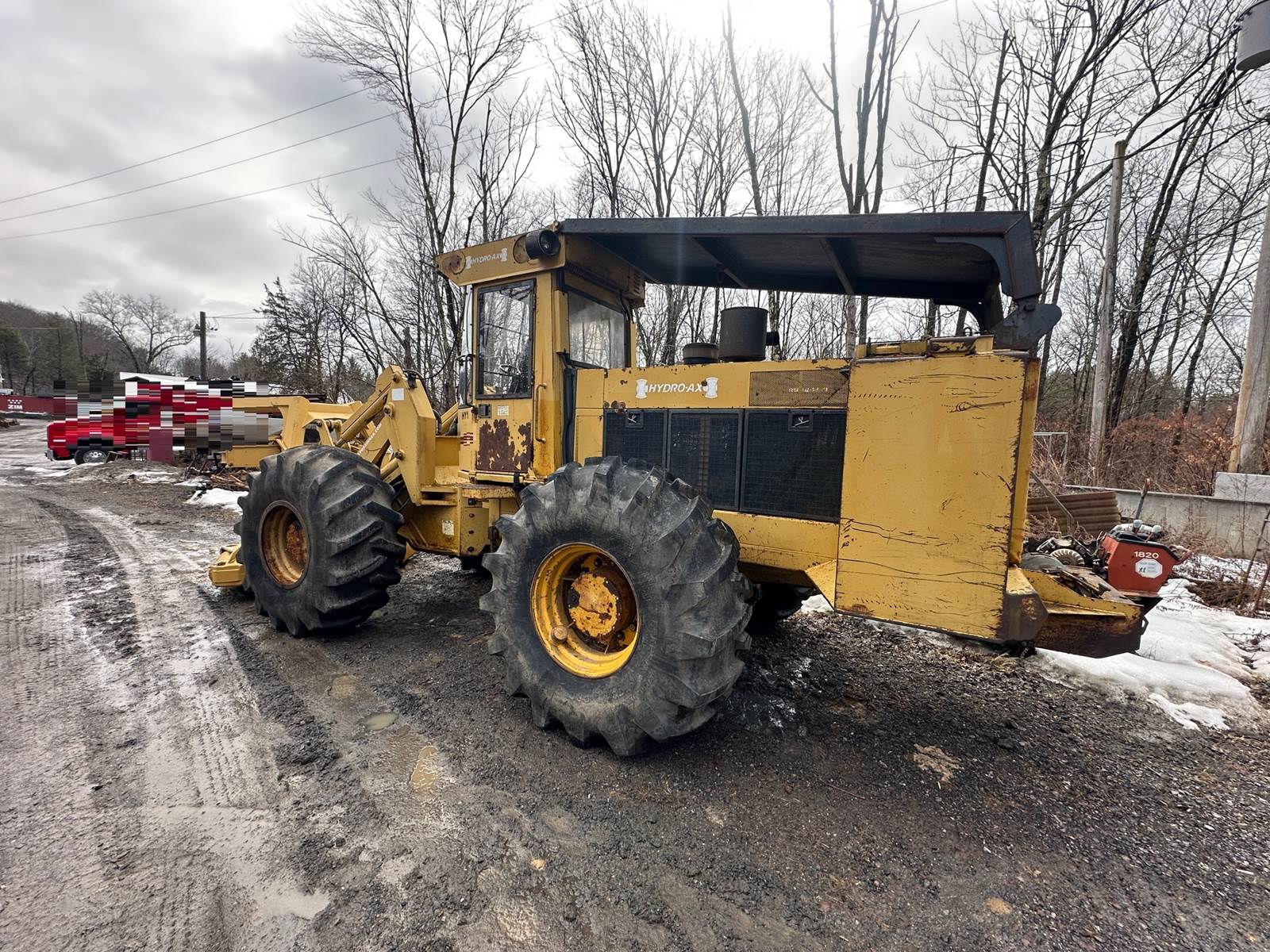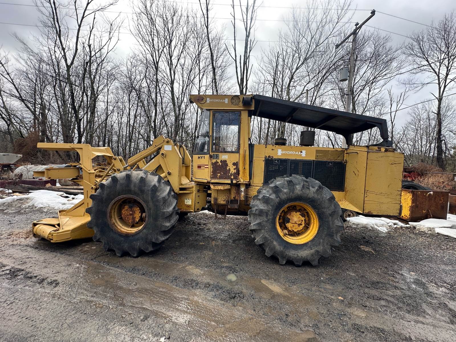 Hydro-Ax 3 wheel feller cutter, John Deere 4cyl 4039 turbo diesel motor, shows 4416 hours, fully operational, second identical parts machine...