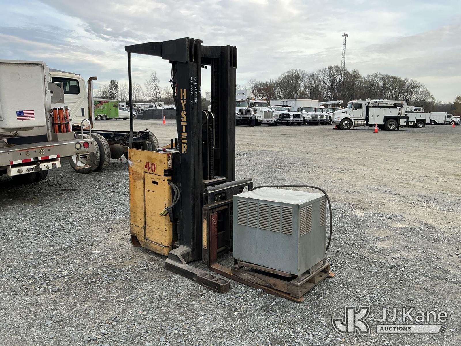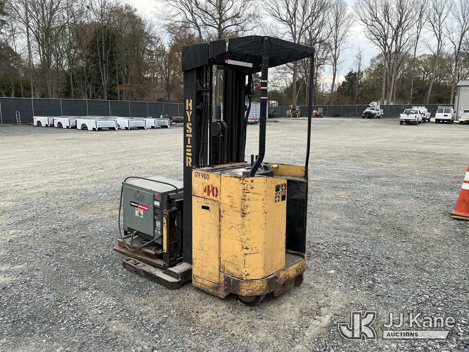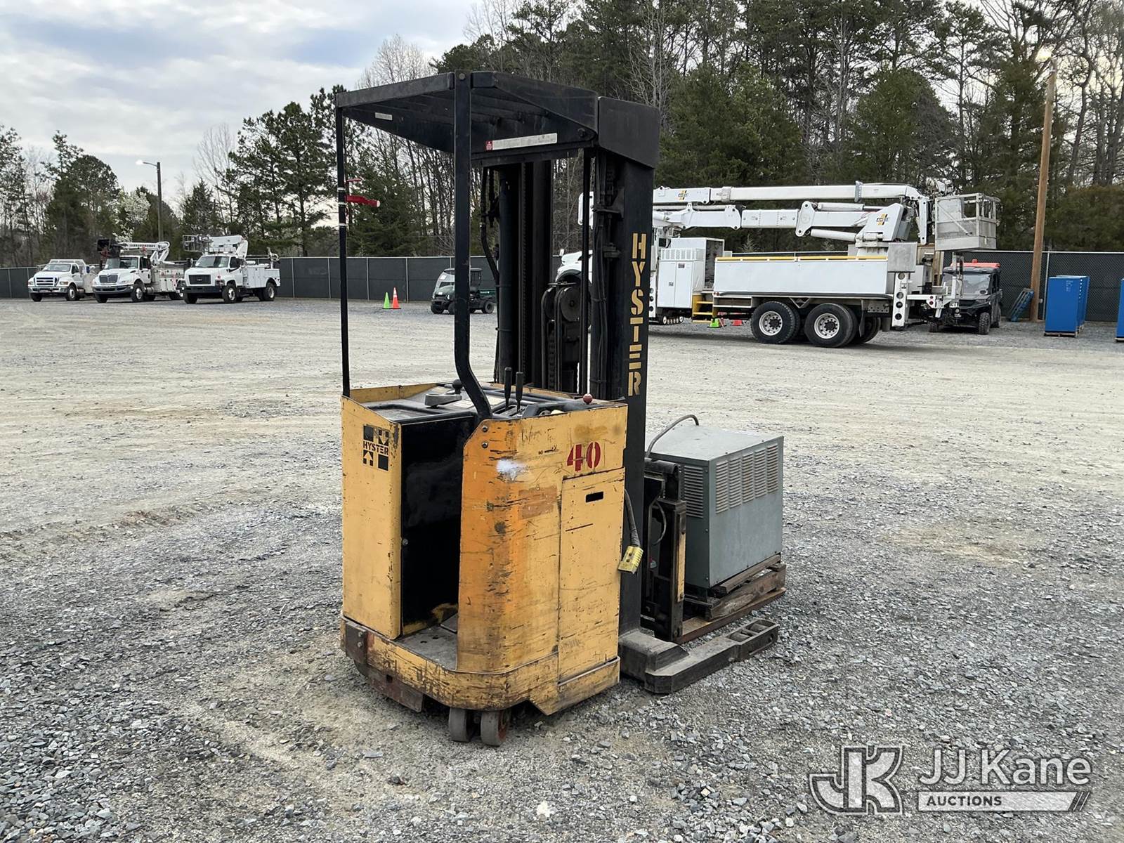 1990 Hyster N40ER Stand-Up Forklift, s/n C138D0, battery powered, Hydrostatic, with 3900lbs capacity, 213 in 3 stage mast, 40 in forks w/reach & charger, (Not Running, Condition Unknown , Dead Battery) (Reads 525 hours) NOTE: This unit is being sold AS IS/WHERE IS via Timed Auction and is located in China Grove, NC. Inspection & preview days for this unit are the 2 business days prior to the first day of items closing for this auction, item is located at 820 E NC Hwy 152 China Grove, NC 28023 and hours of operations are 8a-4p. For pre-sale questions, please contact Office Staff @ (704) 674-1113. (Buyer is responsible for removal. Assistance by consignor or JJ Kane Auctions is not assured.)