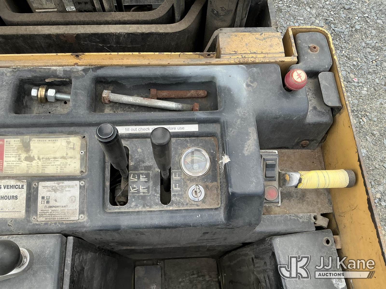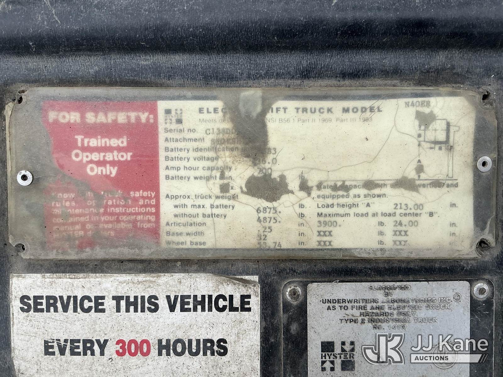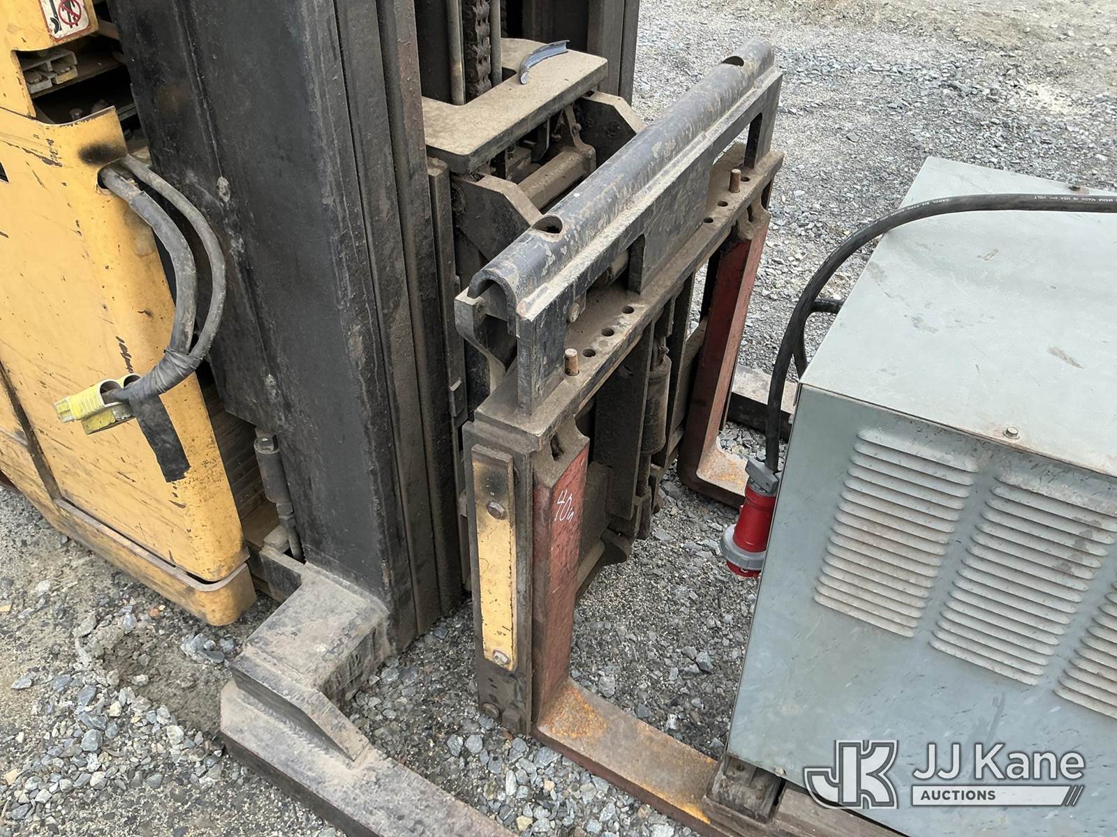 1990 Hyster N40ER Stand-Up Forklift, s/n C138D0, battery powered, Hydrostatic, with 3900lbs capacity, 213 in 3 stage mast, 40 in forks w/reach & charger, (Not Running, Condition Unknown , Dead Battery) (Reads 525 hours) NOTE: This unit is being sold AS IS/WHERE IS via Timed Auction and is located in China Grove, NC. Inspection & preview days for this unit are the 2 business days prior to the first day of items closing for this auction, item is located at 820 E NC Hwy 152 China Grove, NC 28023 and hours of operations are 8a-4p. For pre-sale questions, please contact Office Staff @ (704) 674-1113. (Buyer is responsible for removal. Assistance by consignor or JJ Kane Auctions is not assured.)