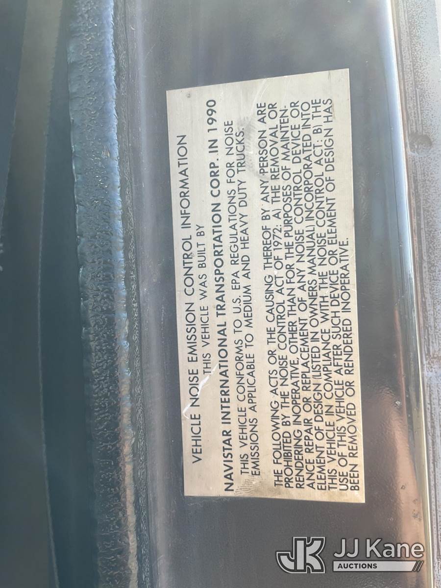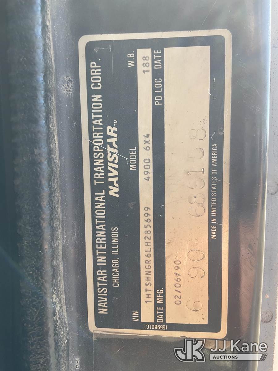 1990 International 4900 T/A Dump Truck, 7.6L L6 DIESEL 6X4, 8-spd + Lo & Lo-Lo, (Exempt from Odometer Disclosure - Reads 148,545 miles) (Runs, Moves & Dump Operates)(Corrosion) This is a Titled Item NOTE: This unit is being sold AS IS/WHERE IS via Timed Auction and is located in South Beloit, IL. Inspection & preview days for this unit are the 2 business days prior to the first day of items closing for this auction, item is located at 14354 Dearborn Ave South Beloit, IL and hours of operations are 8a-4p. For pre-sale questions, please contact Derek Eklund at (608) 904-0618 or (derek.eklund@jjkane.com). (Buyer is responsible for removal. Assistance by consignor or JJ Kane Auctions is not assured.)