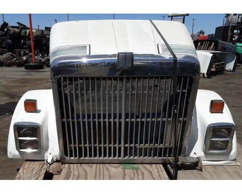 1990 International 9370 Hood, Complete, 65"L, Cracks Near Headlights, Part # 1648534C92.