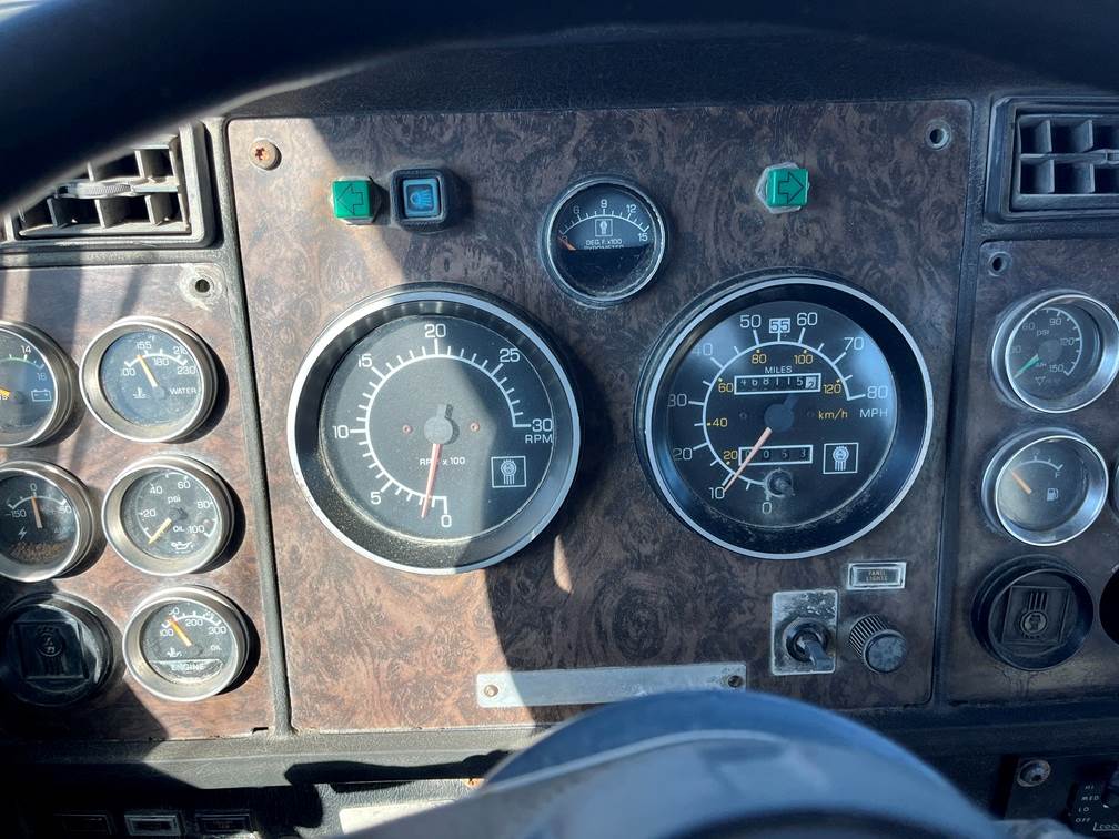 1990 Kenworth W 900 Day Cab, Cat 3406 Diesel engine, 355 HP, 13 speed manual, showing 468,115 miles, 228" WB, Chelsea P.T.O., GVWR 50,000 lbs., 12,000 Front , 15,000 Rear, tires 60%, sliding 5th wheel, call with Questions, Financing Available.